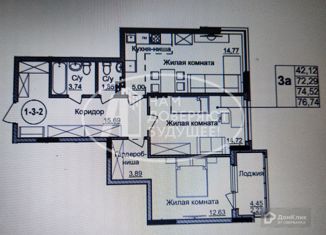 Продажа 3-комнатной квартиры, 74.4 м2