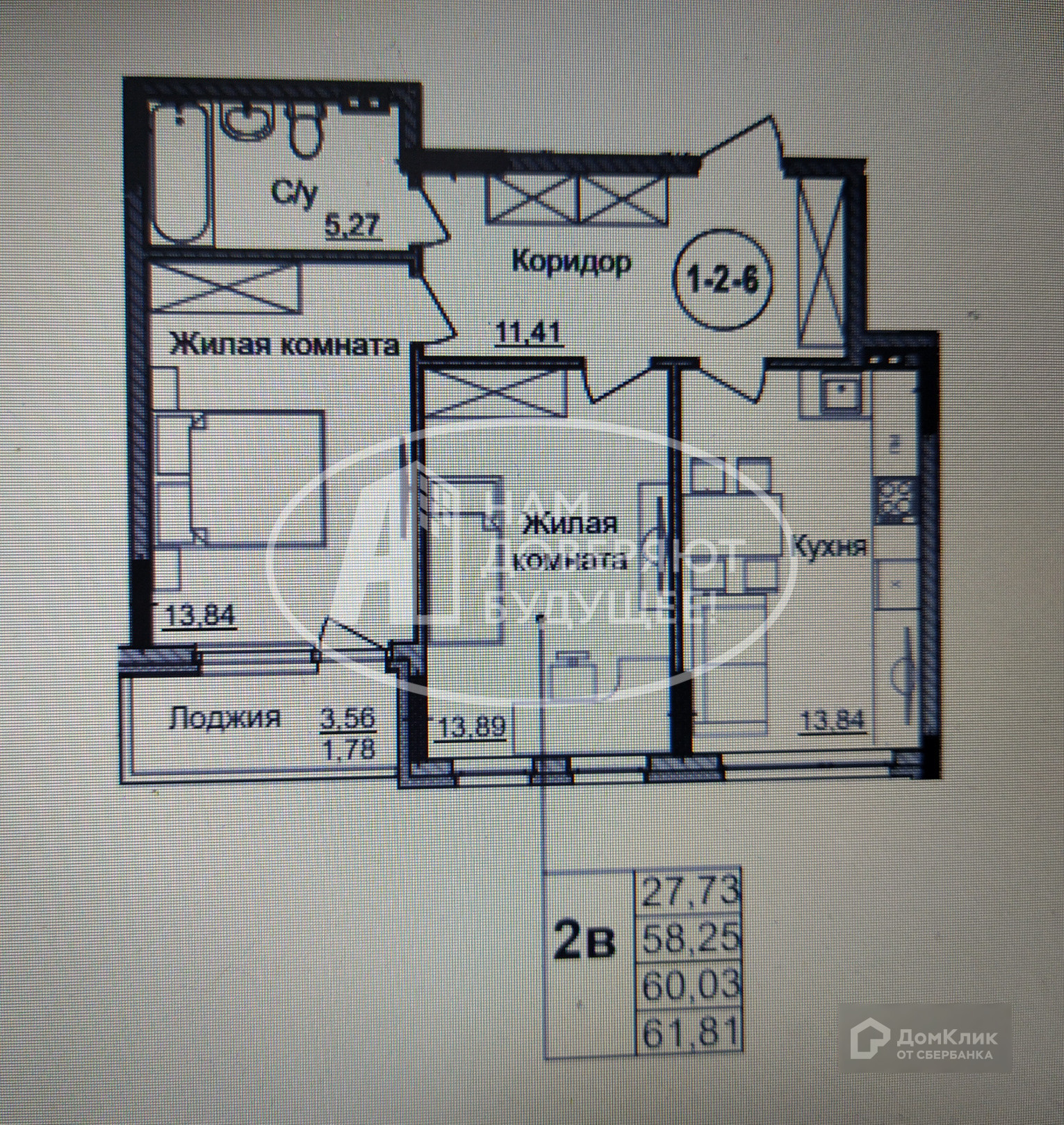 Общая площадь 60.3 м2