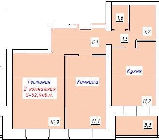 Общая площадь 53 м2