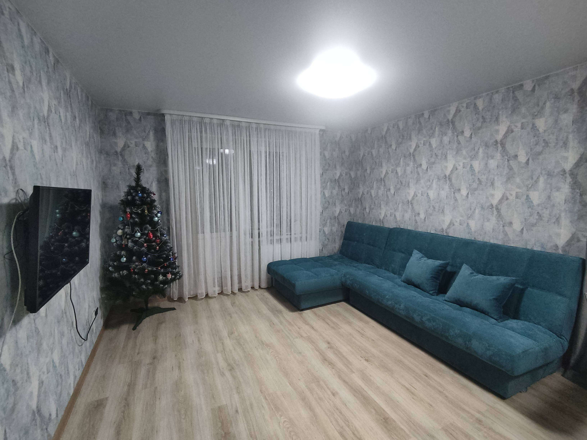 ✅В комнатах и на кухне полы ламинат, в прихожей линолеум. Потолки все натяжные.
