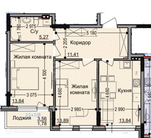 Общая площадь 61.81 м2