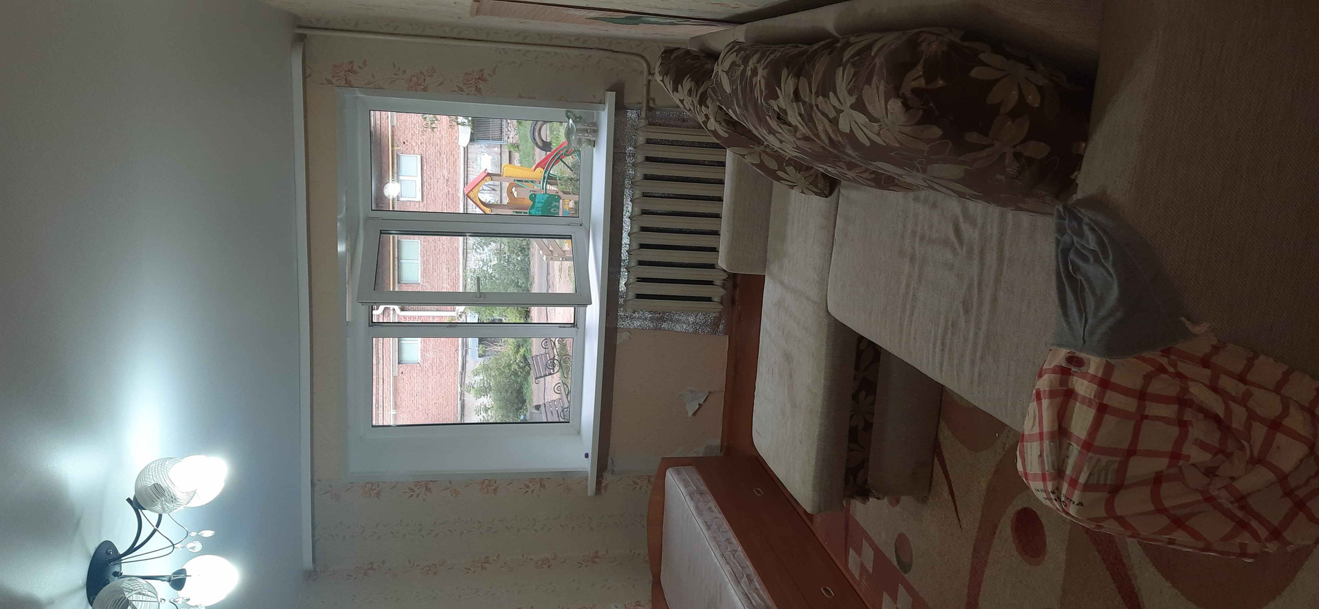 Первый этаж высоко, окна поменяны, натяжной потолок, требуется ремонт.