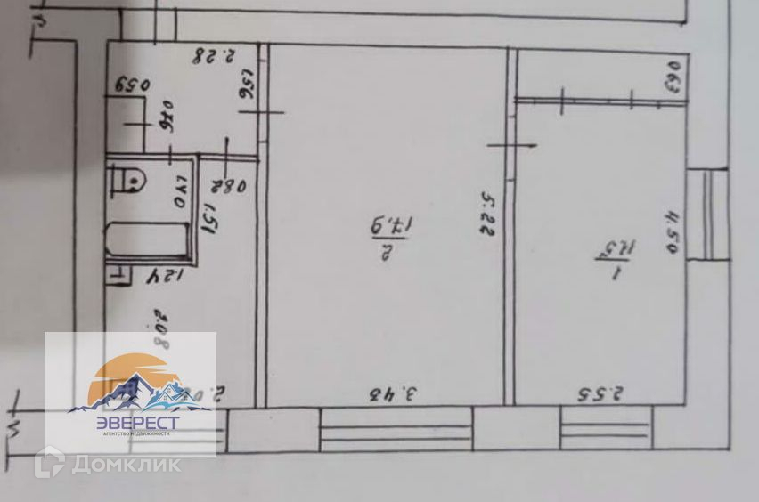 2-комнатная квартира, 41.8 м2, этаж 3 / 3, на продажу в Воткинске, улица Энтузиастов, 15