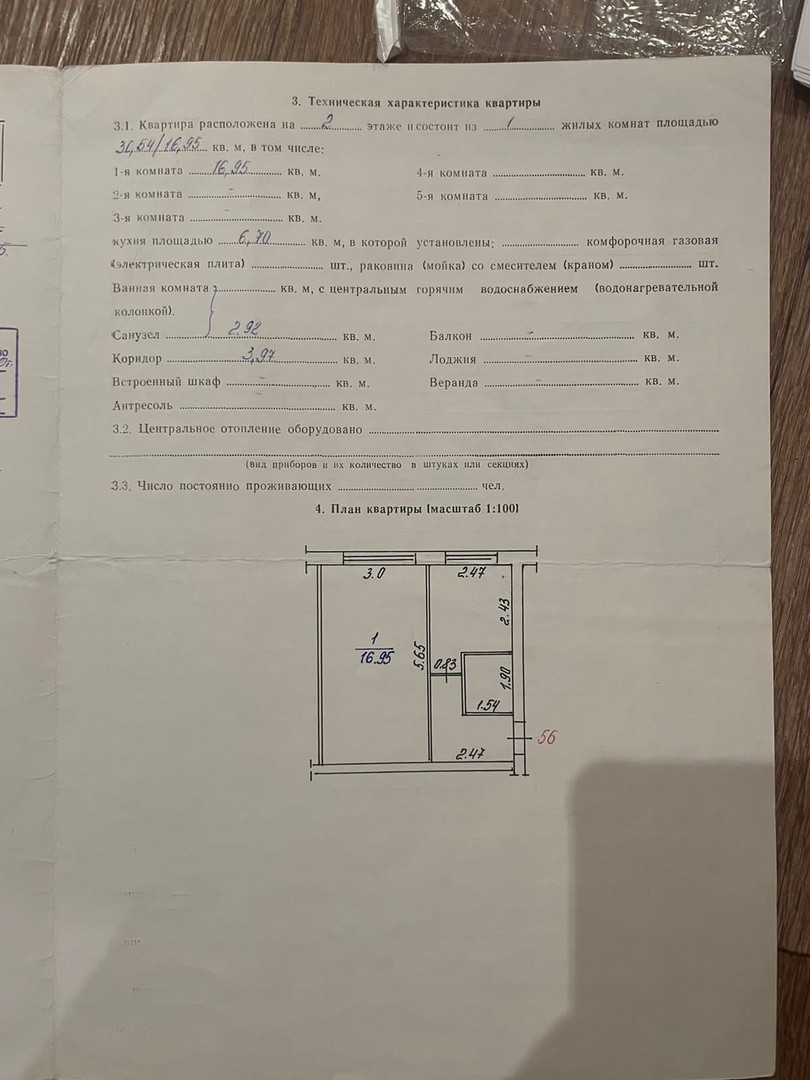 Общая площадь 30.54 м2