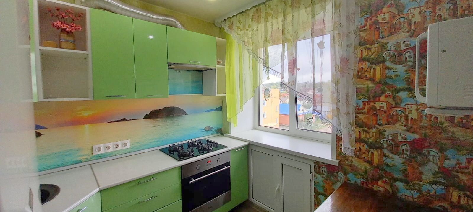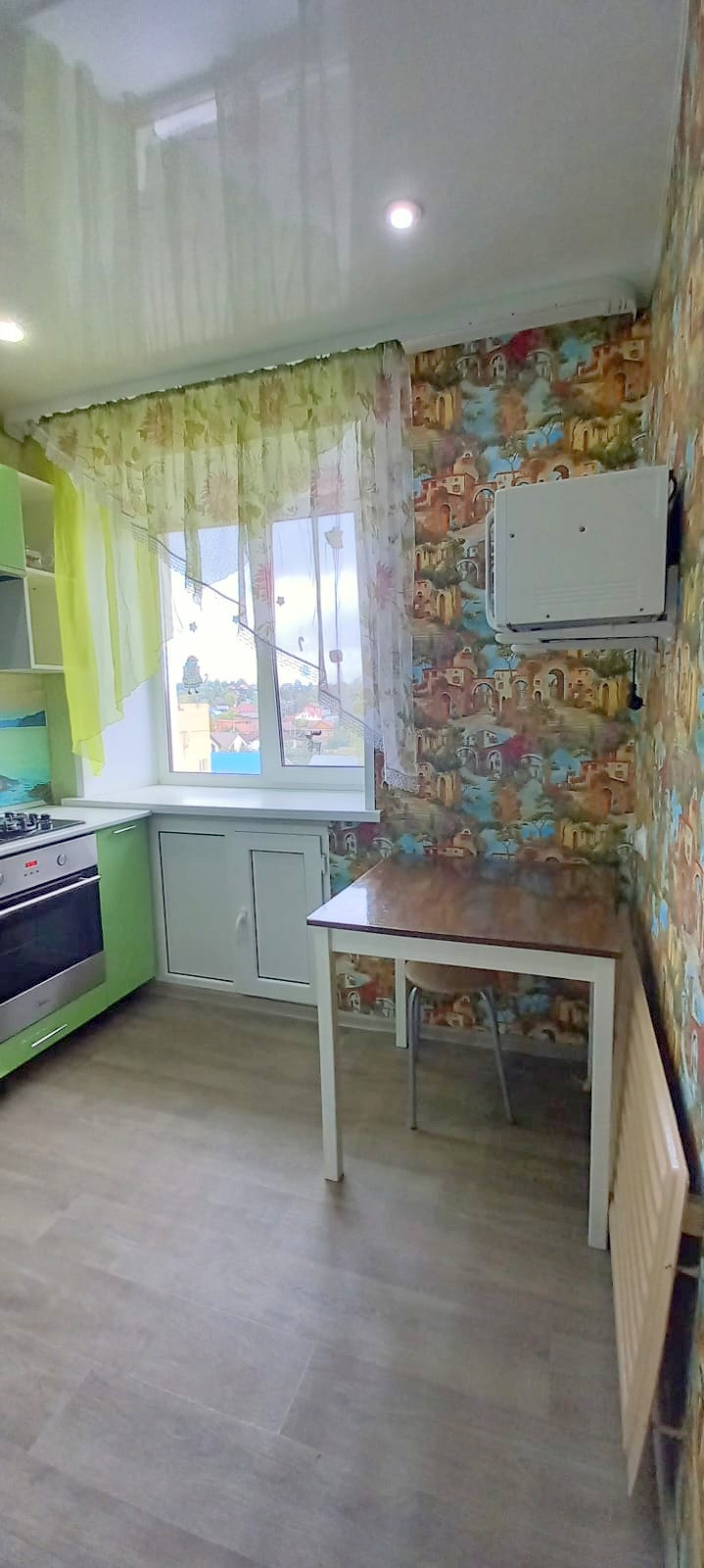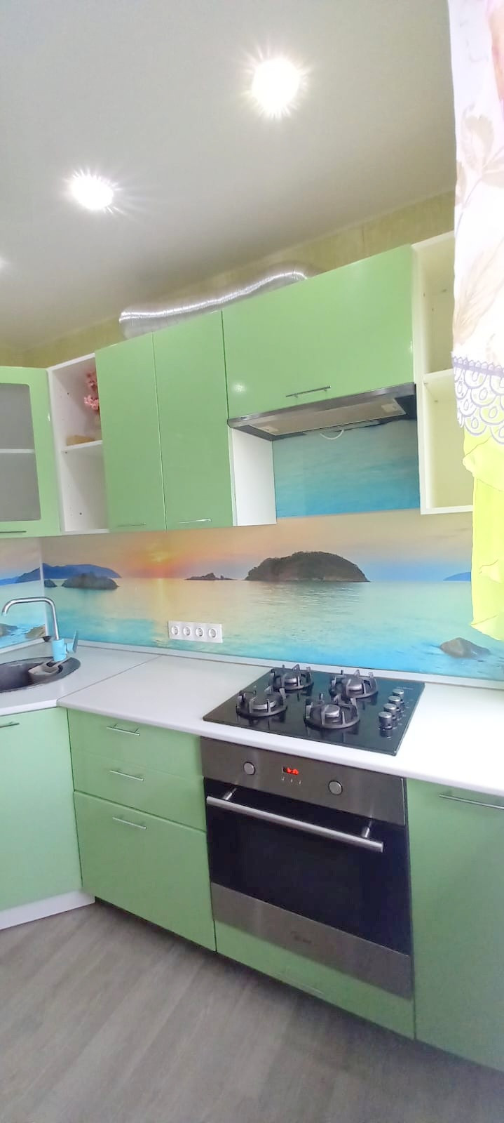 Окна пластиковые, балкон застеклен, установлены счетчики, кухонный гарнитур.