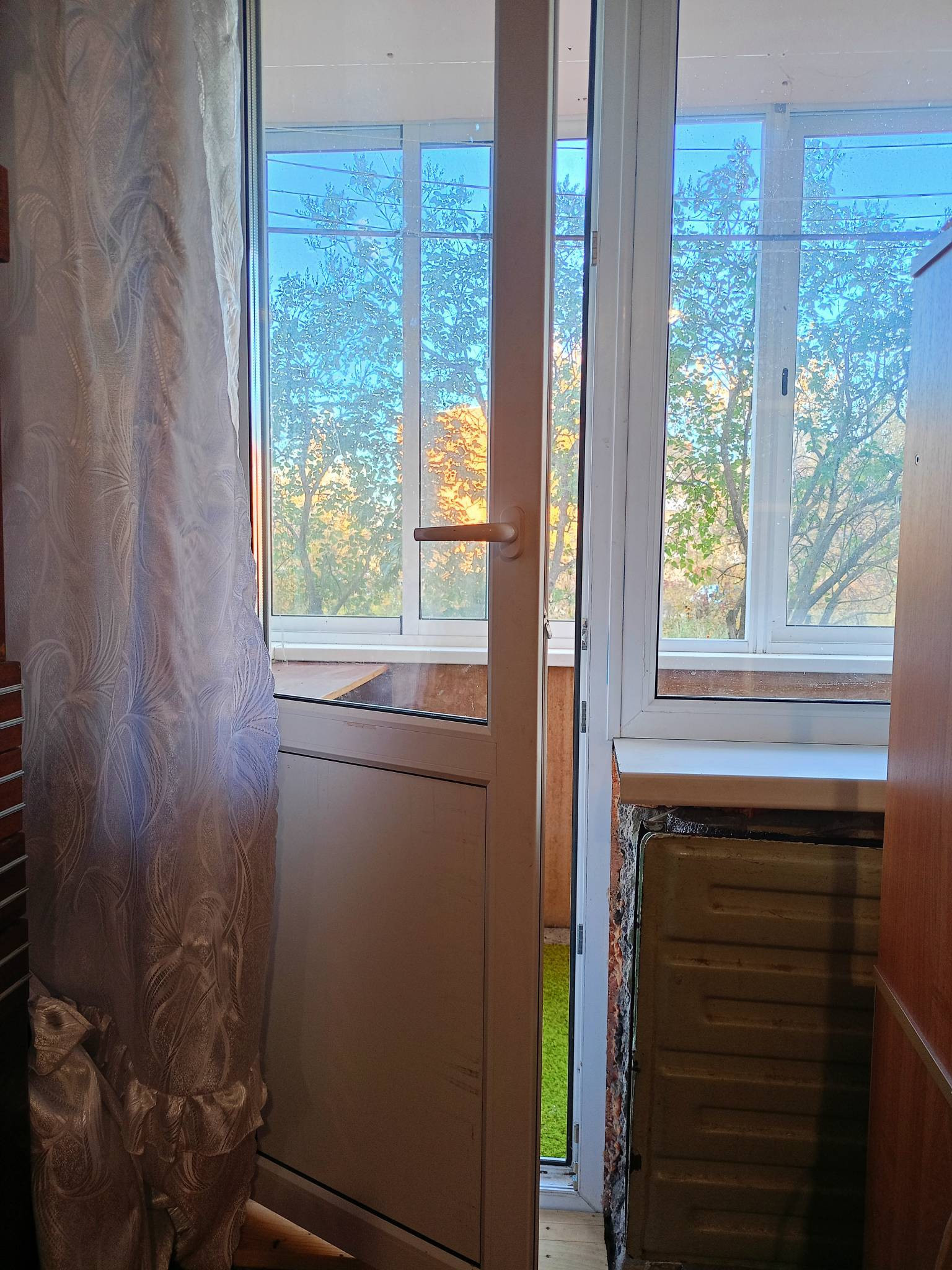 -Окна пластиковые на кухне и в 2-х комнатах , одно деревянное.