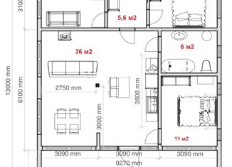 Общая площадь: 100 м2