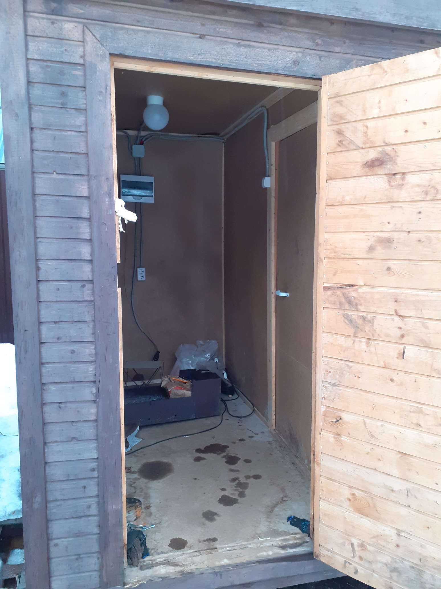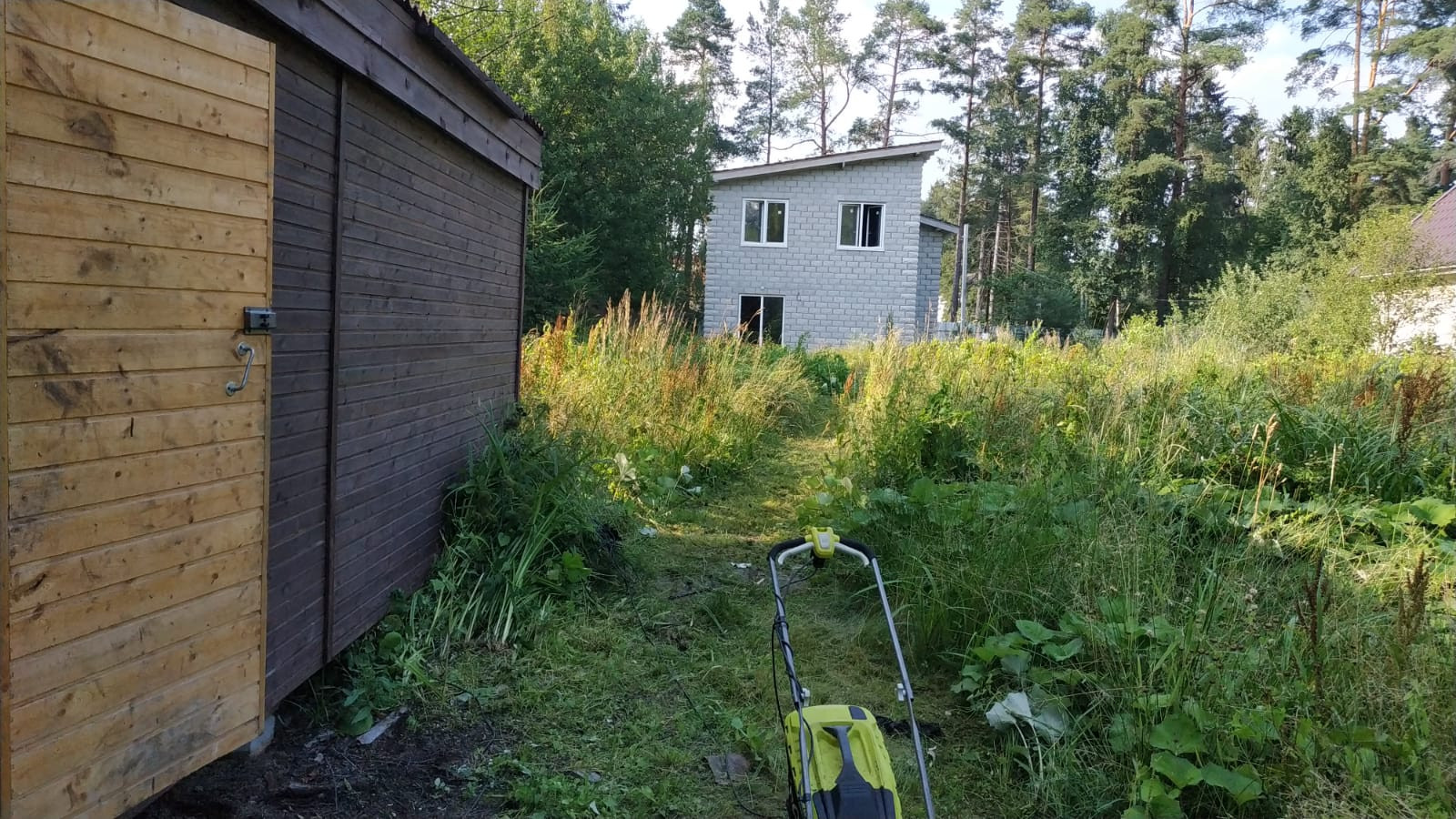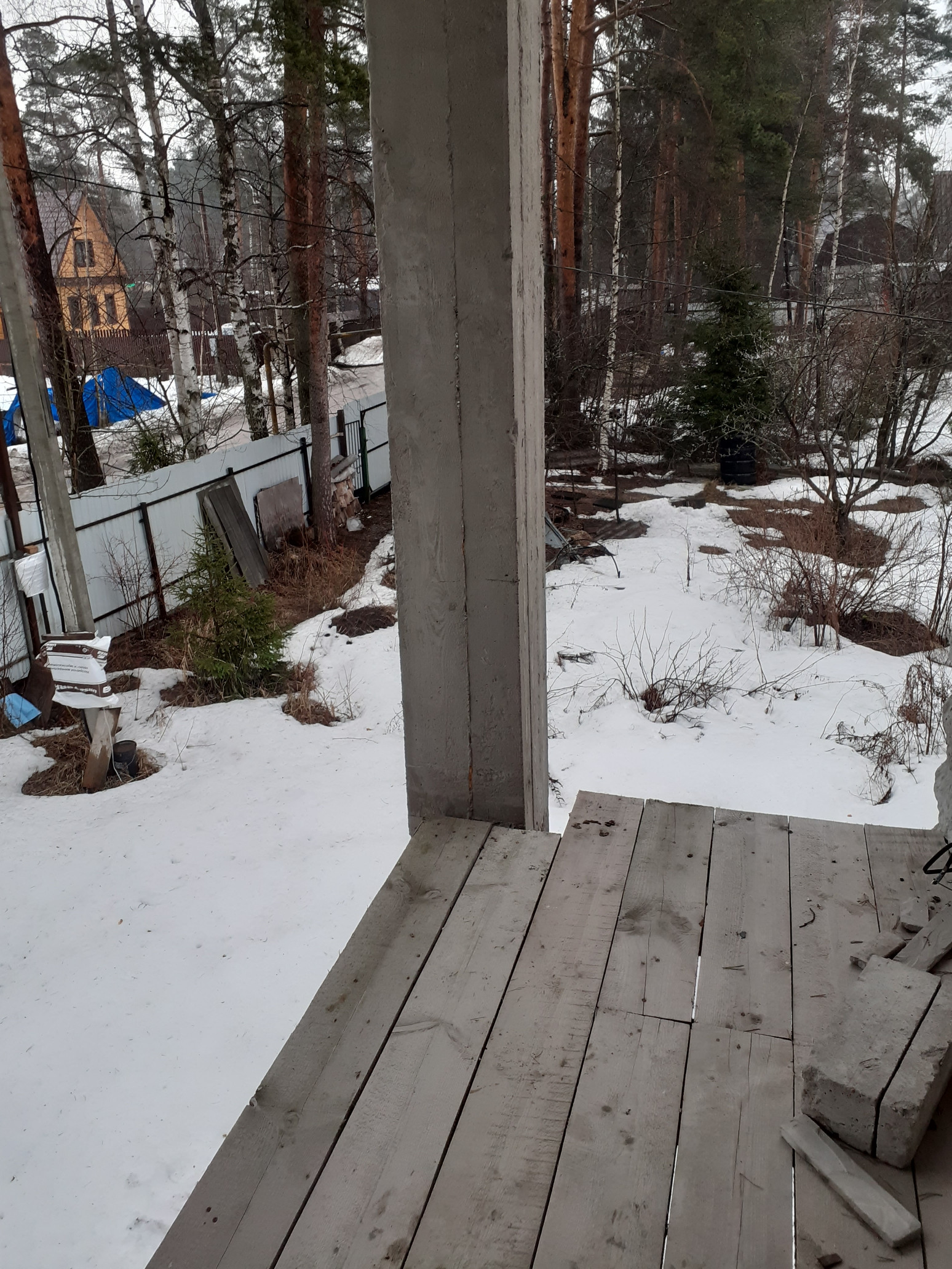 Участок - 10 соток, частично огорожен, на участке есть укомплектованная бытовка со спальными местами и электричеством, отдельный туалет на улице. Для нового заборного огорождения есть комплект столбов.
