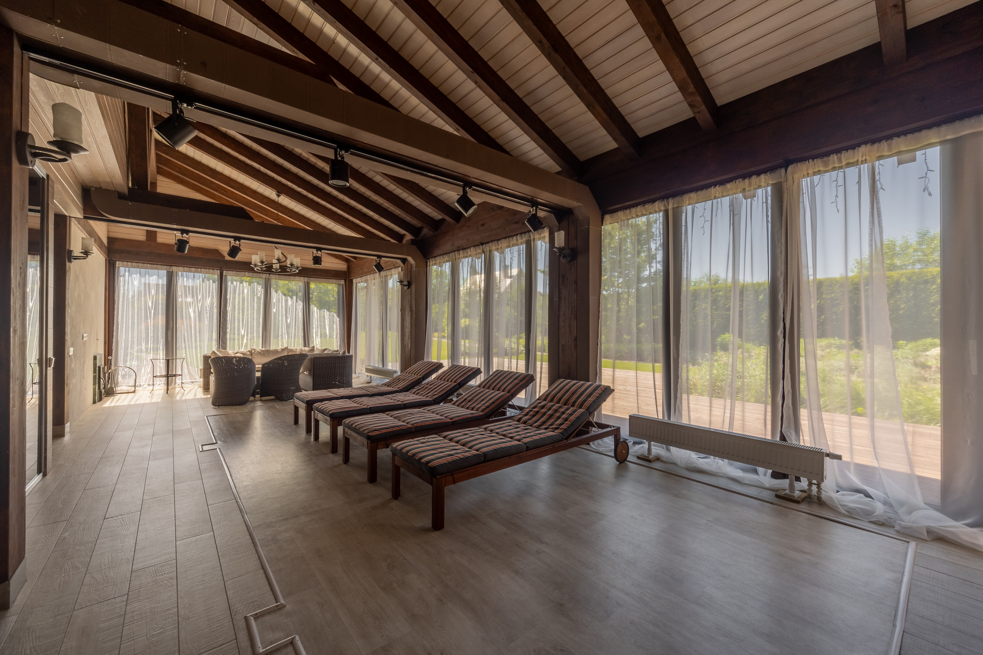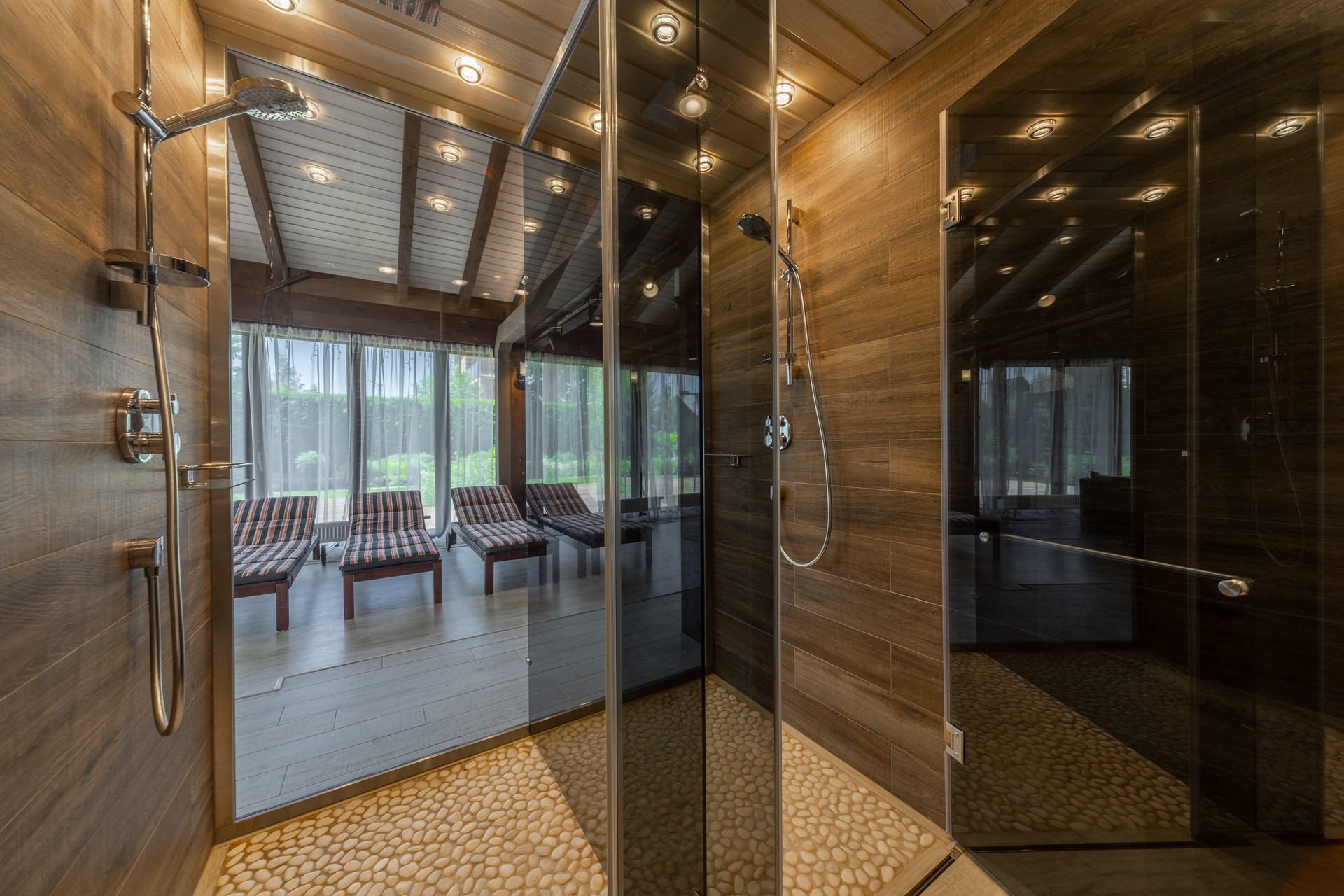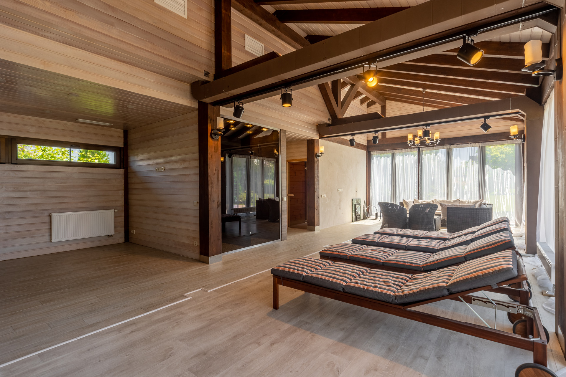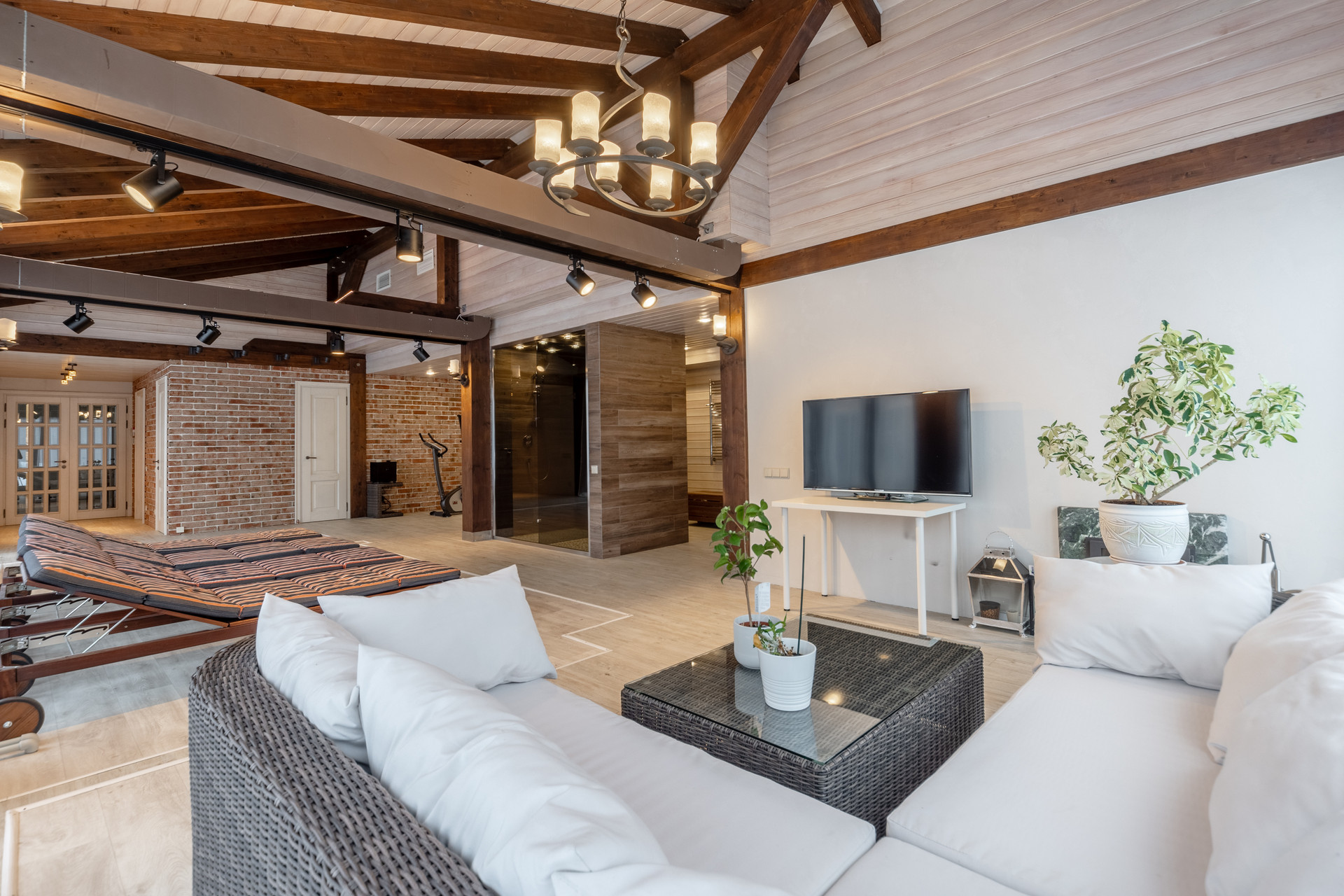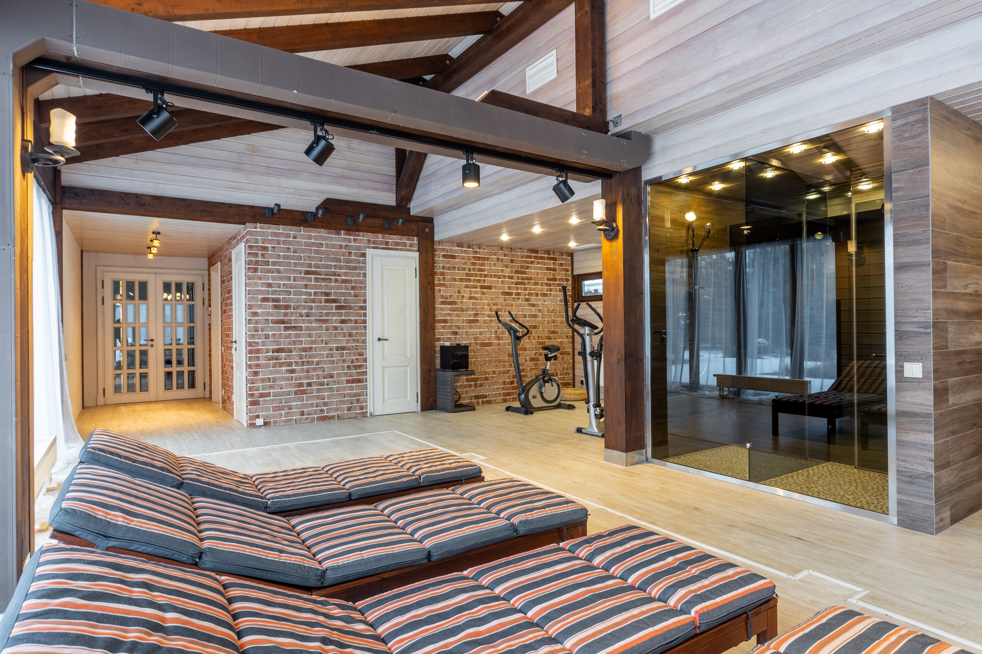 SPA-зона оснащена полностью сдвигаемой террасной оконной системой немецкой компании Solarlux, зоной для спорта и отдыха, дровяная баня и ИК-сауна с отделкой кедром, подготовлена под монтаж чаша бассейна с системой противотока. Помещение зоны spa дополнительно оснащено вентиляцией с обдувом на окна, имеется хозяйственная комната и помещение автоматизированной котельной с отдельным входом.