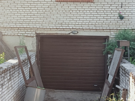 Встроенный гараж на один автомобиль или мастерскую с подъемными воротами и отдельным въездом с улицы.