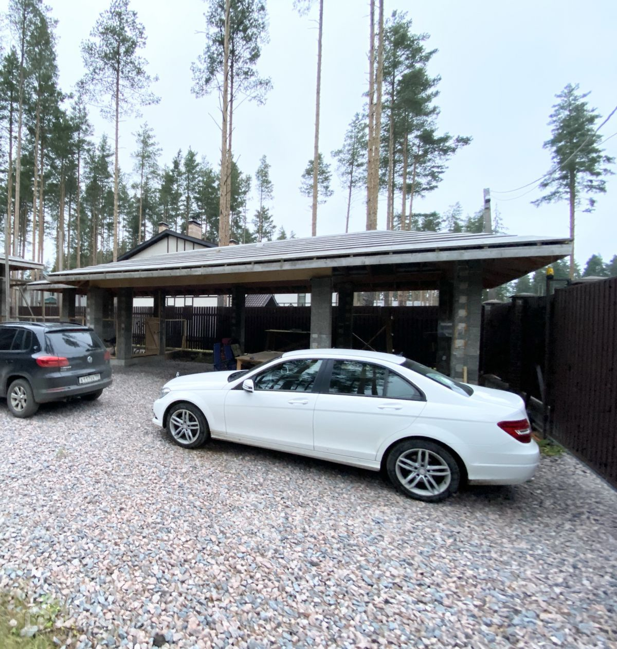 Участок 20 соток - зеленый ровный с красивыми вековыми соснами. Дренаж по периметру. Весь участок огражден качественным деревянным забором на ленточном фундаменте с кирпичными столбами.