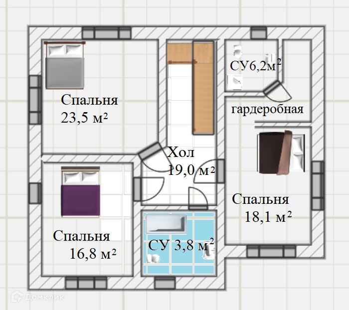 На втором этаже есть 3 полноценные спальни, 2 СУ-оба с окнами и теплыми полами и гардеробная. Во всех спальнях дубовый паркет и двери из массива дуба.