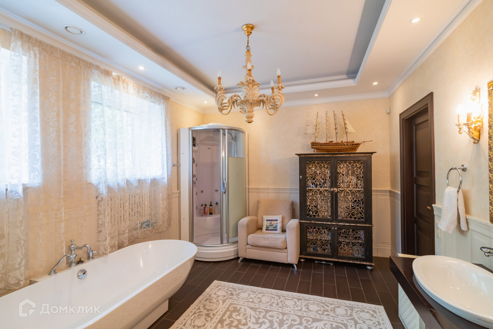Второй этаж представлен мастер спальней, большой ванной комнатой, две спальни, гардеробная.