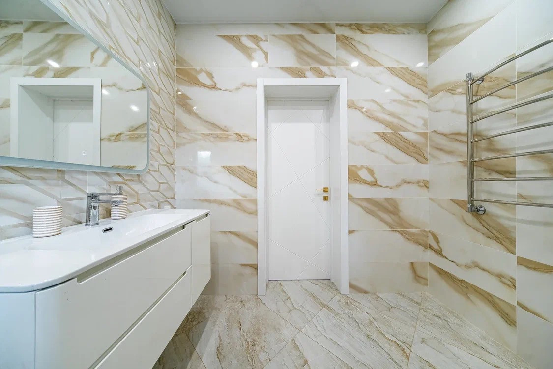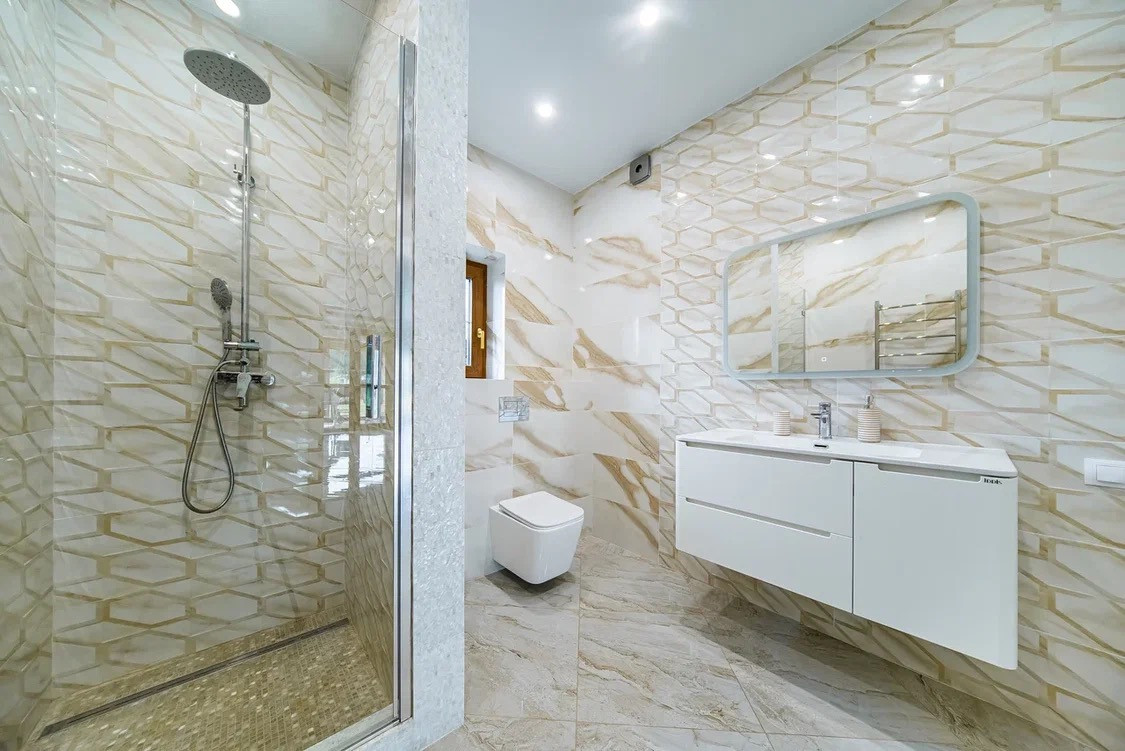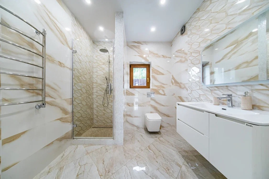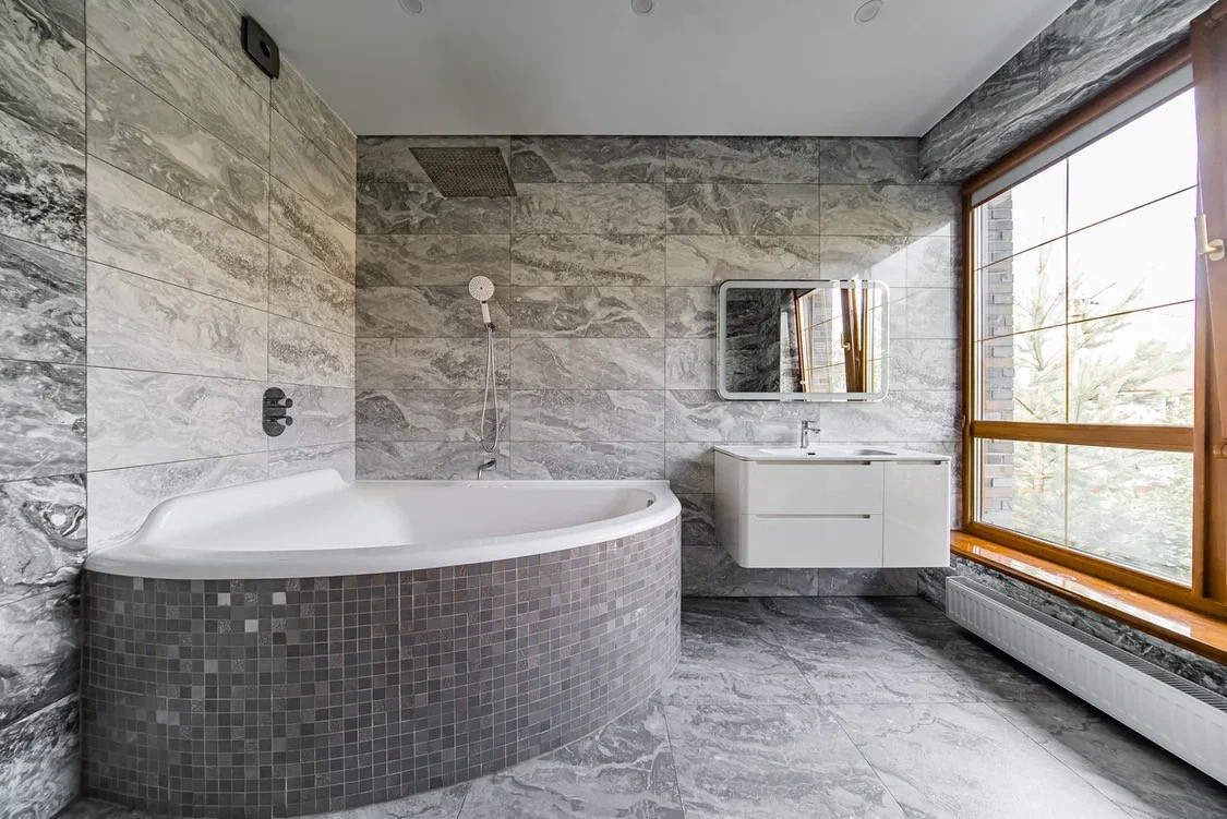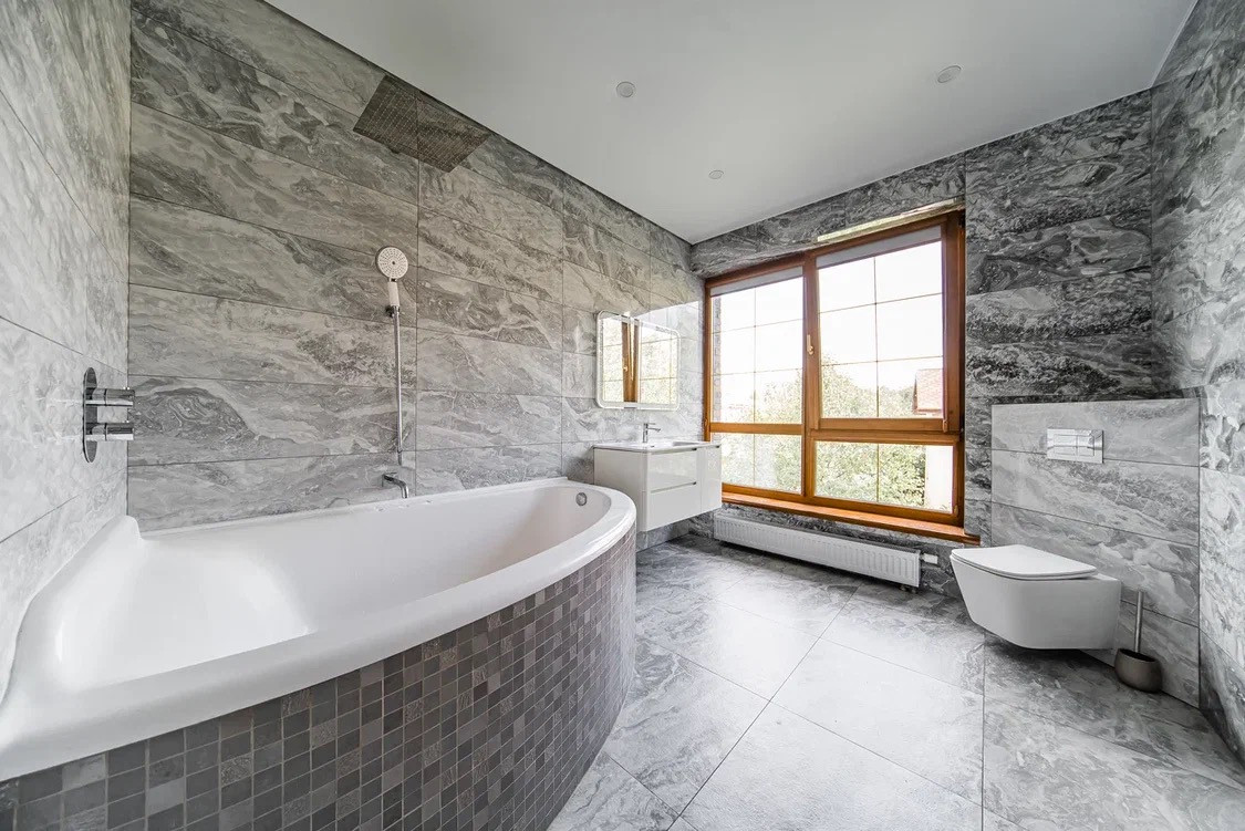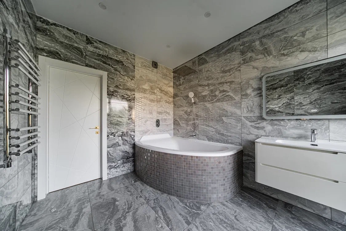 -С/у с ванной из мрамора, встроенный тропический душ