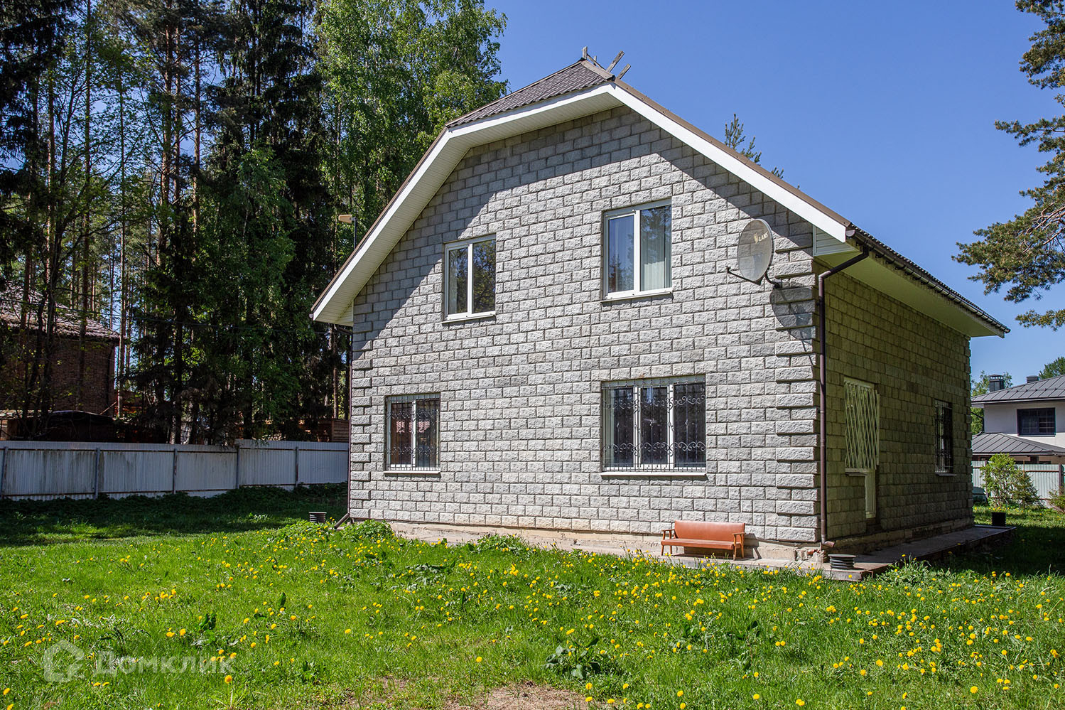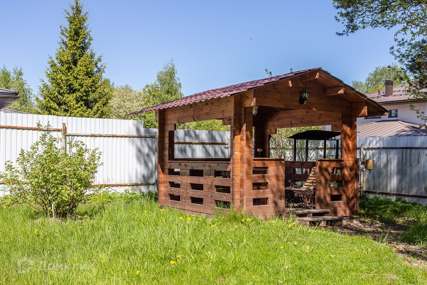 Участок коттеджа огорожен и гармонично вписывается в окружающий природный ландшафт, предлагая не только безопасность, но и прекрасные возможности для отдыха на свежем воздухе.