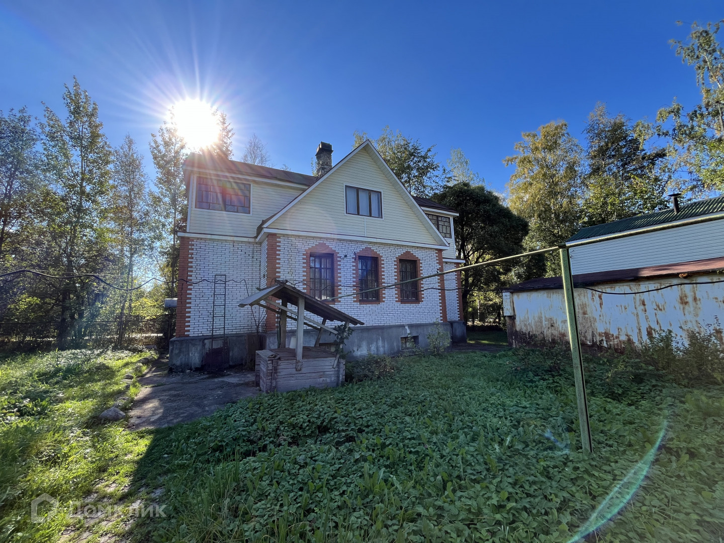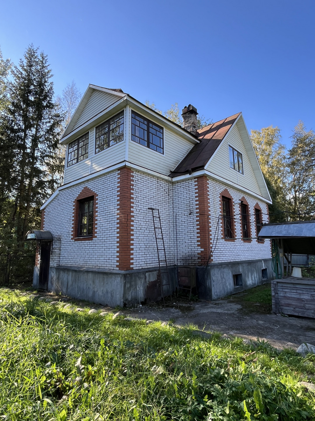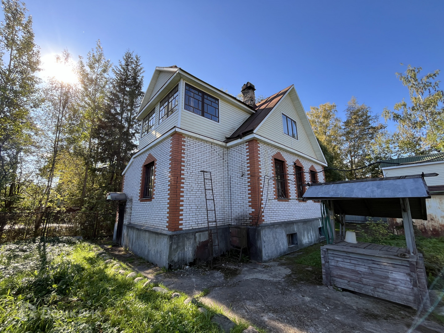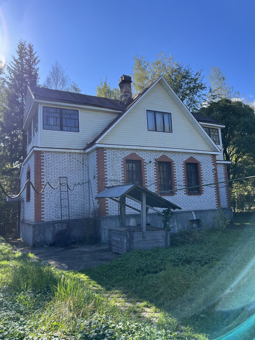 На участке есть дом 138 кв.м. Одноэтажный, с мансардным этажом. Дом из бруса, обшит кирпичом. Ленточный фундамент. Высота потолков 2,8 м.