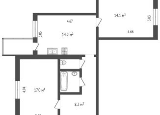 Двухкомнатная квартира на продажу, 58.8 м2, улица Операторов, 1