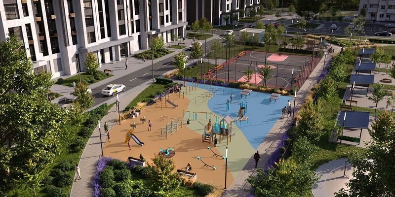 - спортивный корт для футбола и баскетбола;