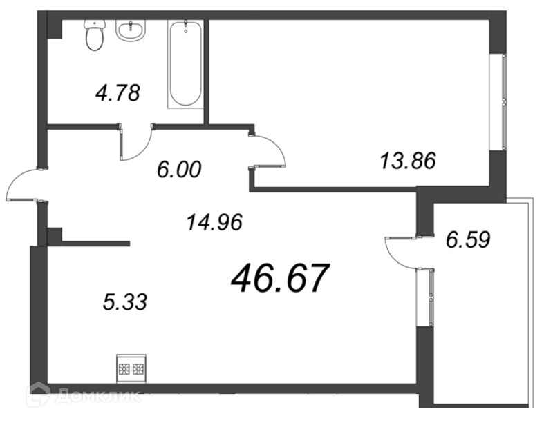 Общая площадь 46.64 м2