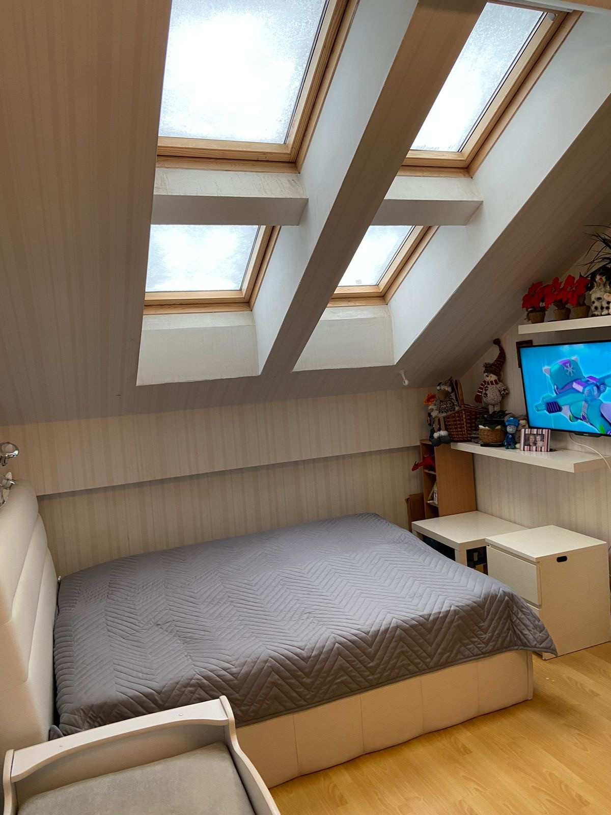 Квартира: общая площадь 54,2 м2. Две жилые комнаты - 19,0 и 16,5 м2, кухня 10,1 м2 плюс панорамная лоджия с видом на лес и озеро. Раздельный санузел. Мансардные окна в комнатах. Отопление от индивидуального котла, то есть температура воды и воздуха регулируется в любое время. Теплый пол. Низкие коммунальные платежи ~ 3 000 руб.