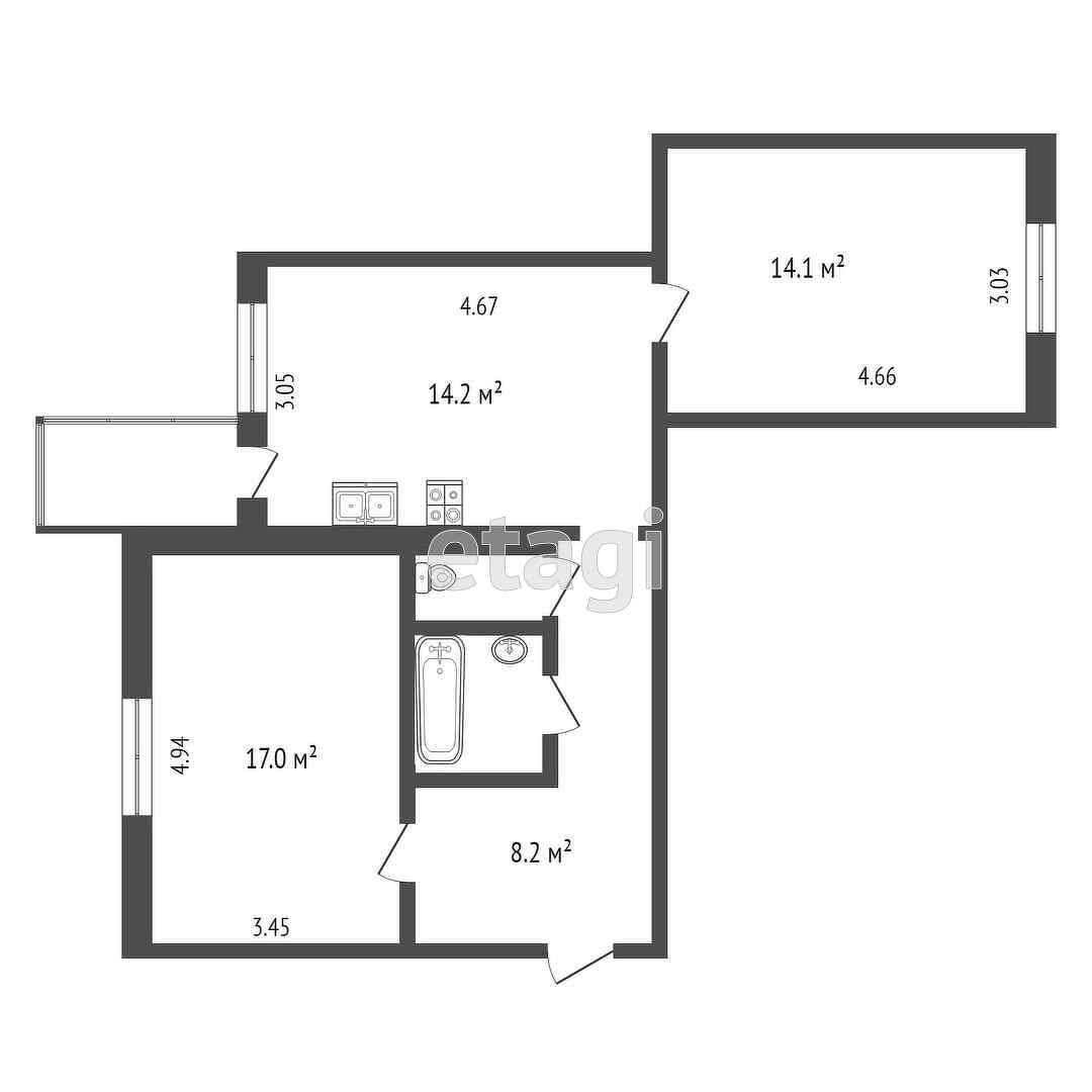 Площадь кухни 14.2 м2