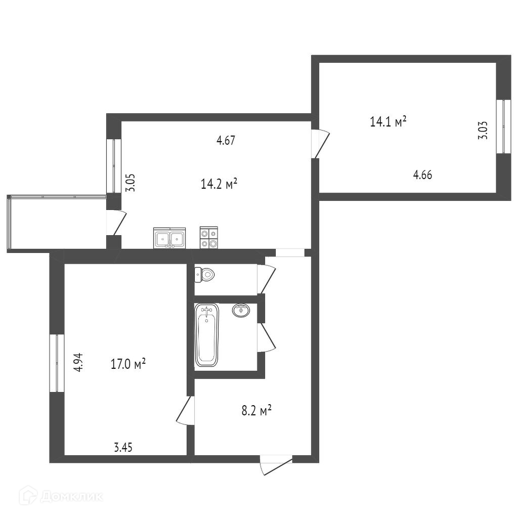 Общая площадь 58.8 м2