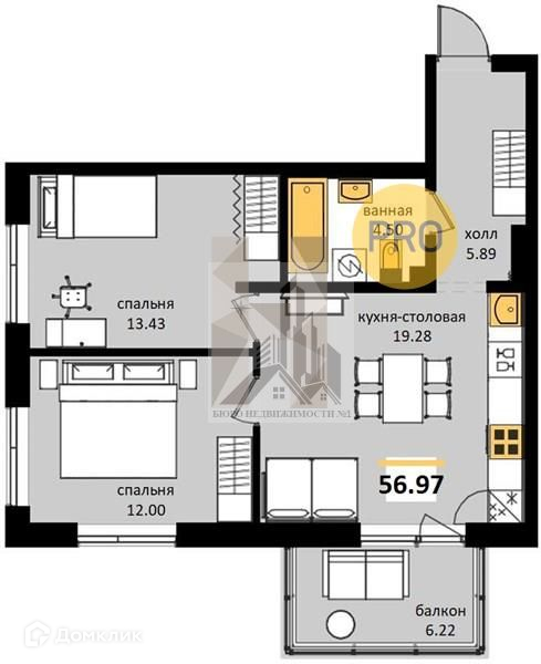 Общая площадь 57 м2