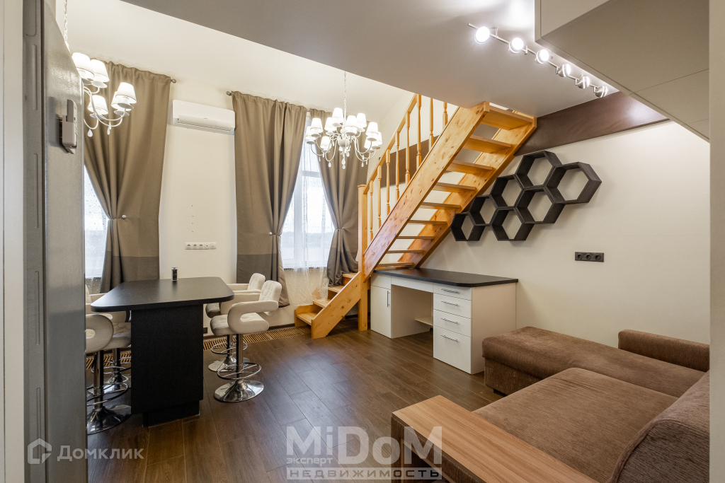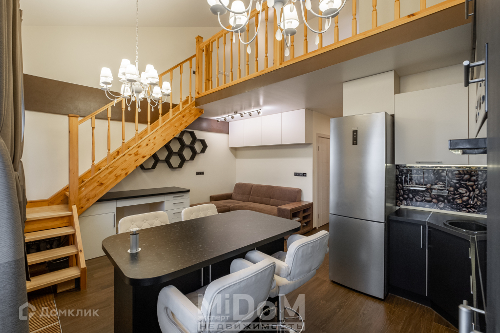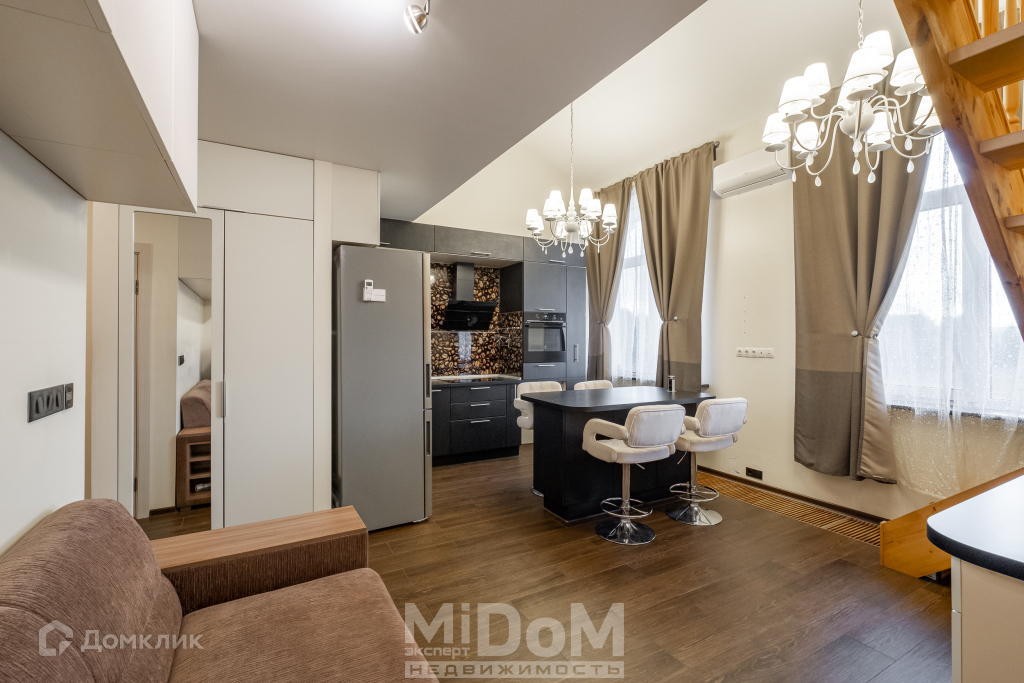 Арт. 40159793. МИДОМ.ЭКСПЕРТ.НЕДВИЖИМОСТЬ предлагает к продаже двухуровневую евро двухкомнатную квартиру с дизайнерским ремонтом в спокойном тихом месте.