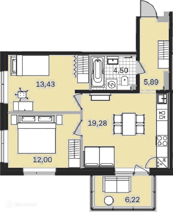 Общая площадь 61.3 м2