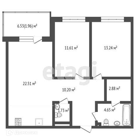 Общая площадь 66.82 м2