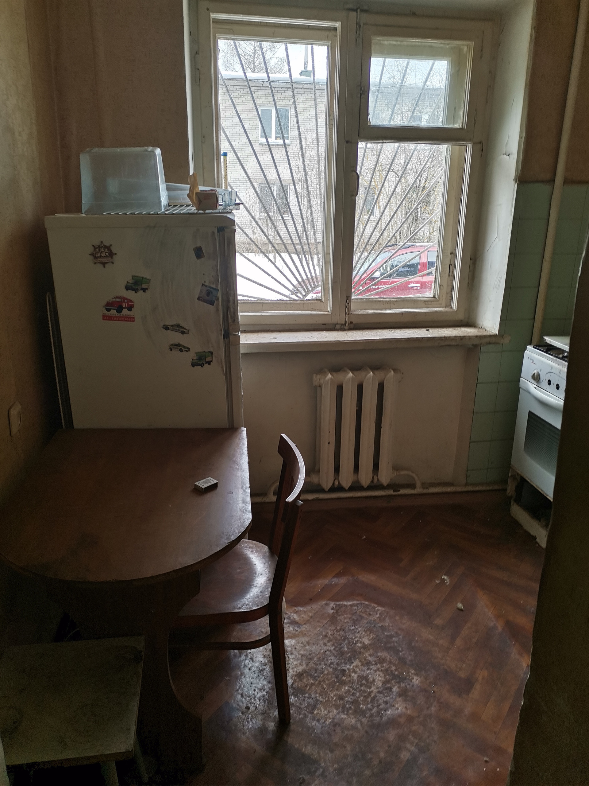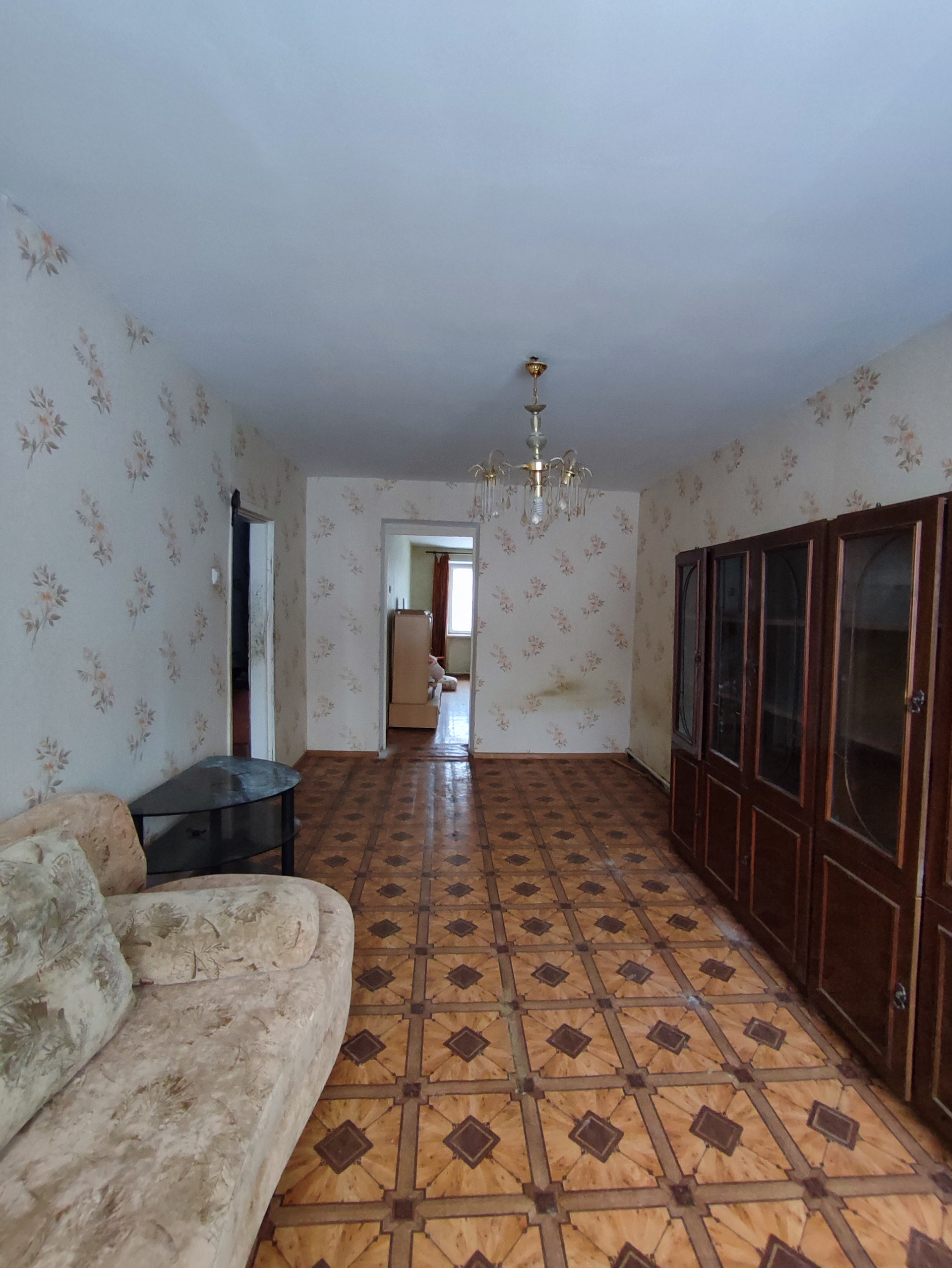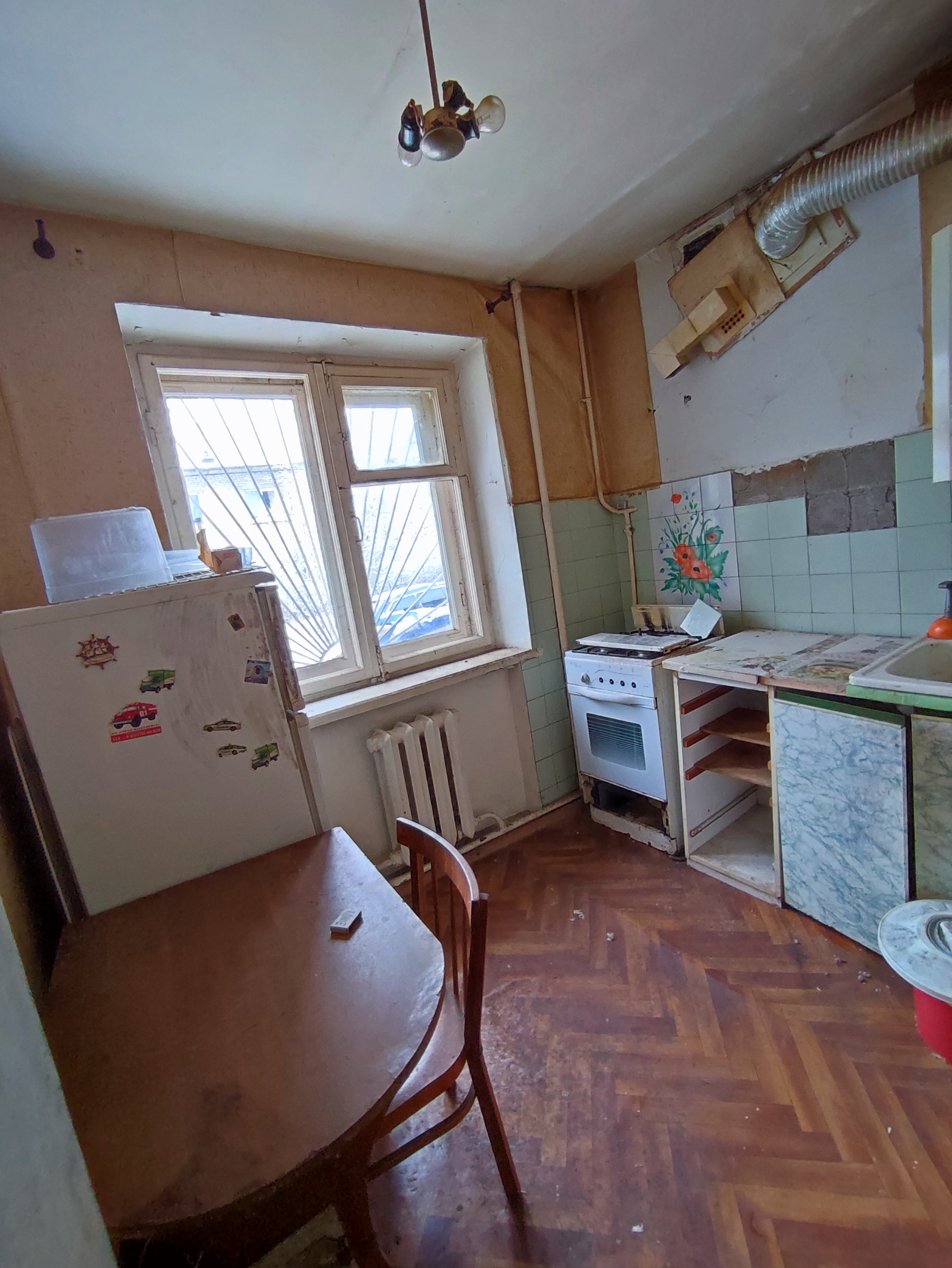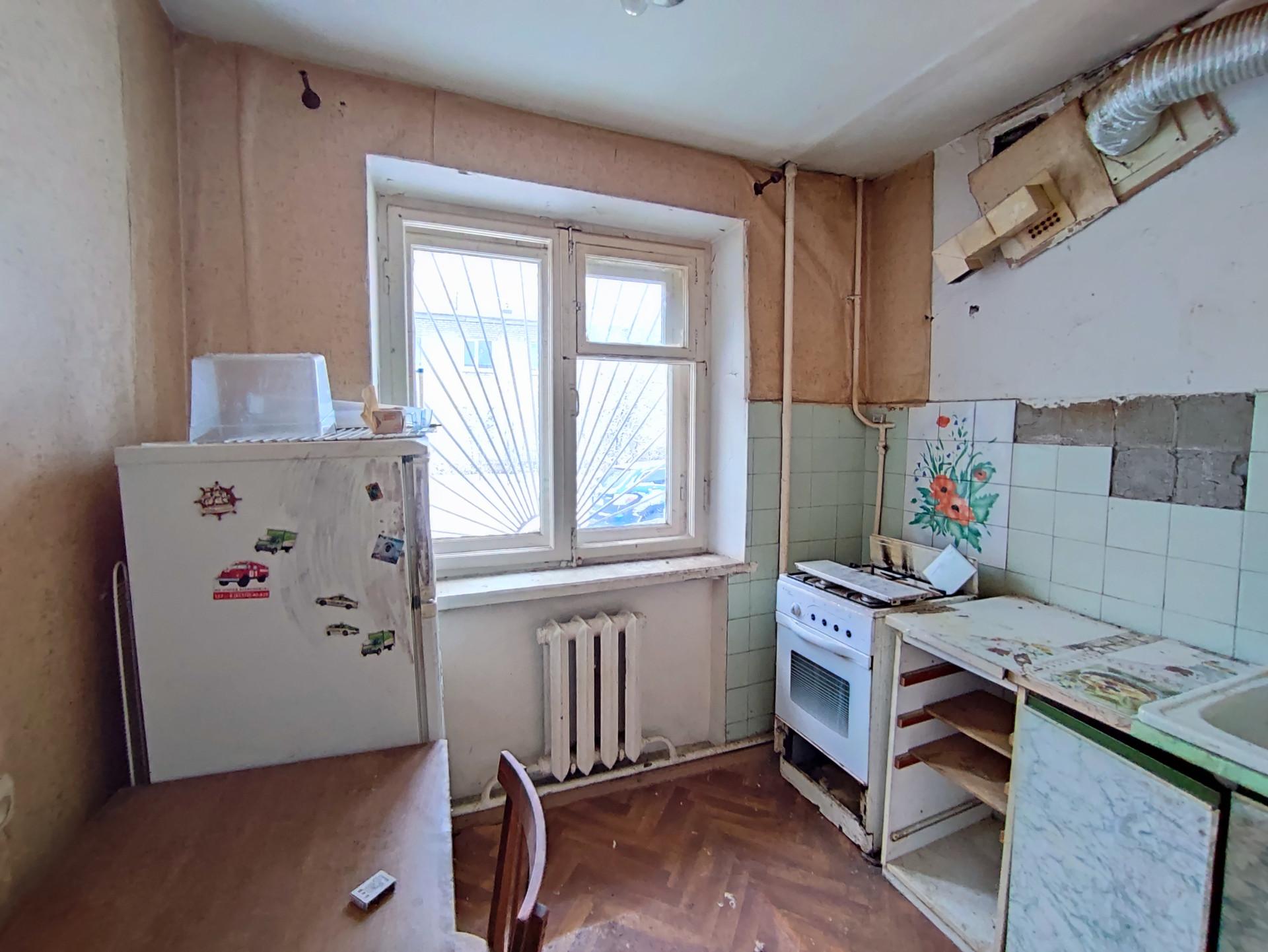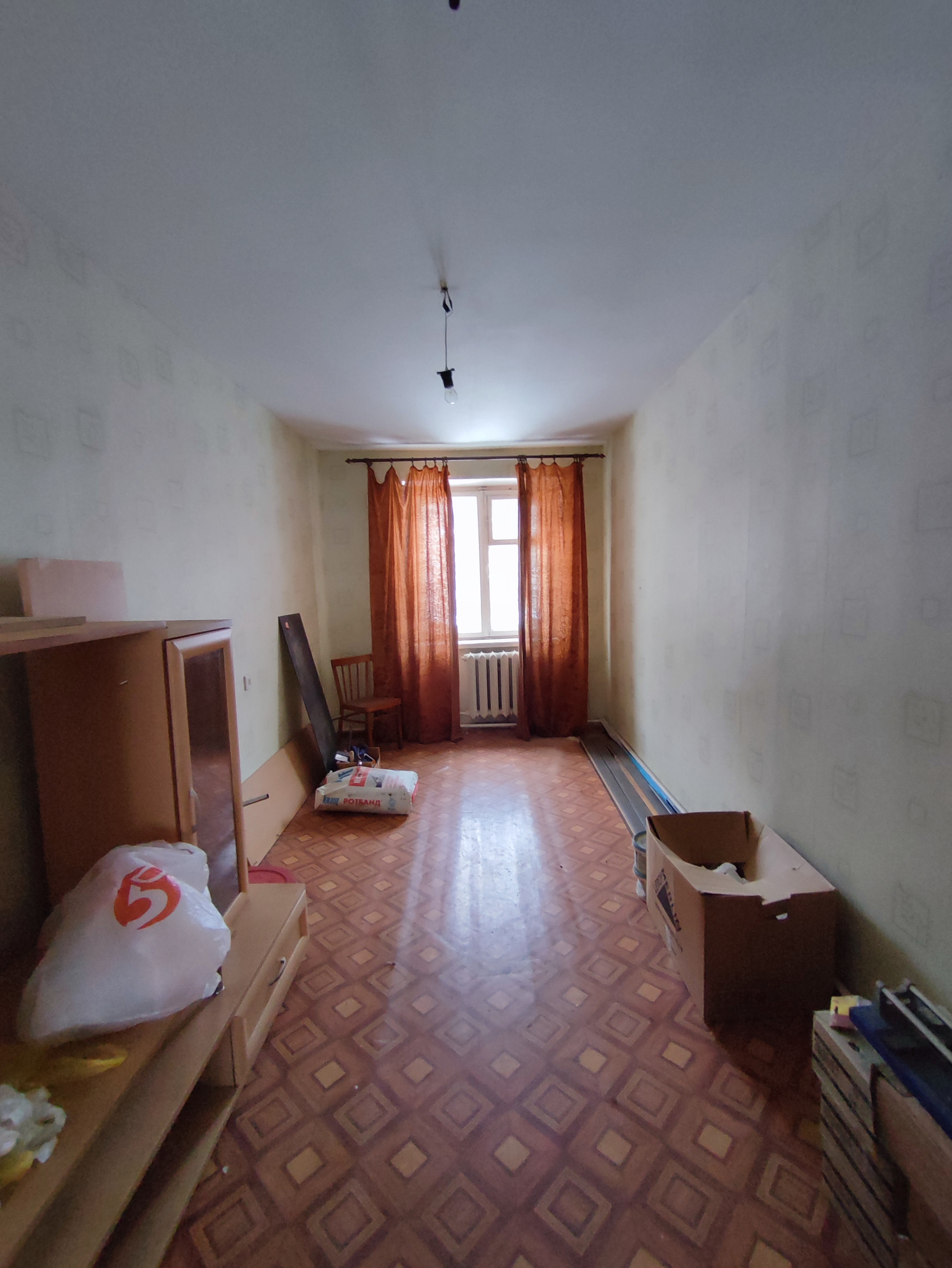 Дом кирпичный , теплый, квартира двусторонняя, комнаты  (12+15 кв.м.), кухня 5,5 кв.м., санузел раздельный, общая площадь 43,8 кв.м., потолок 2,5 м,  требуется ремонт.