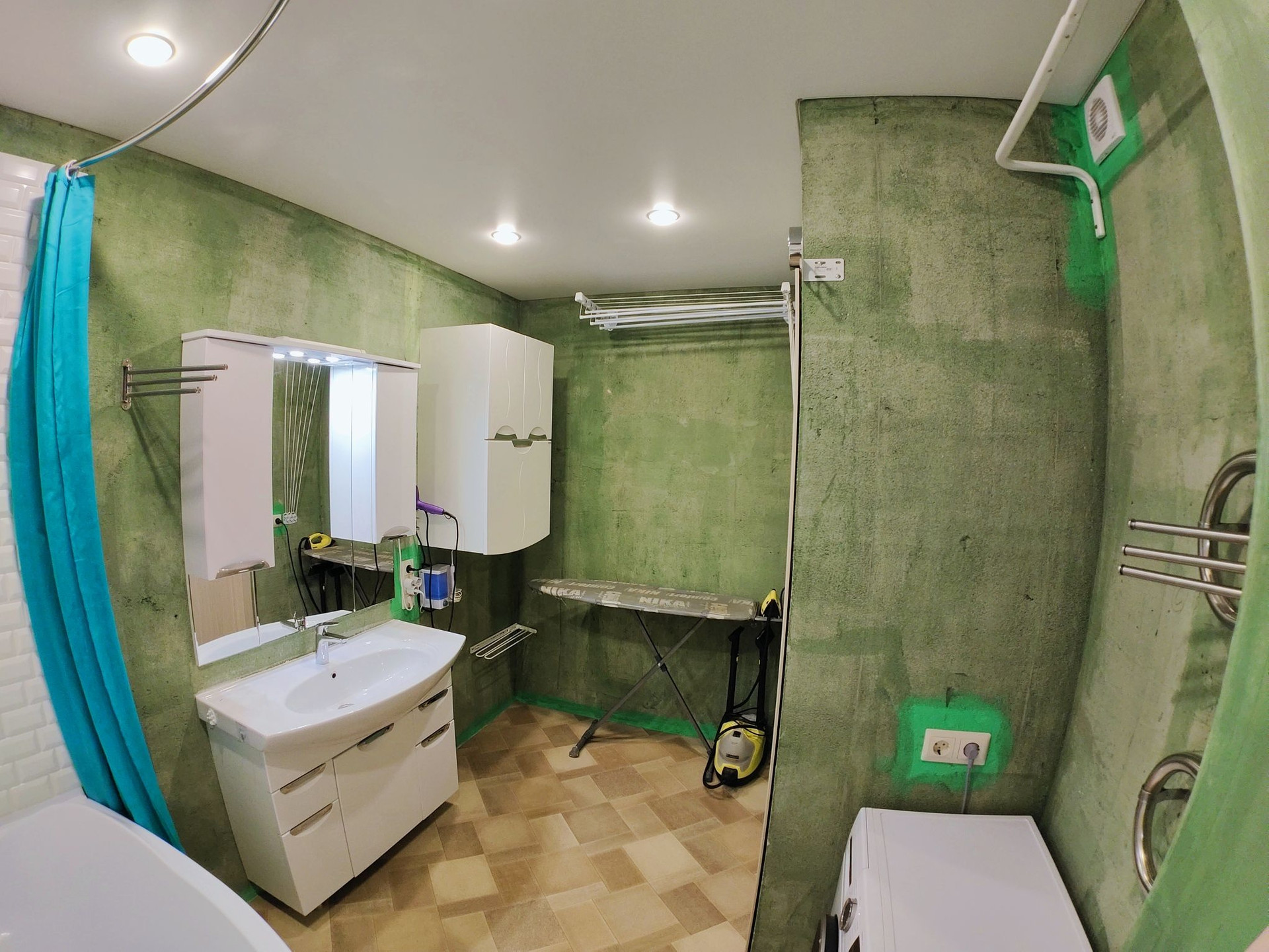 Изюминка:ОГРОМНАЯ (7,2м2) ВАННАЯ комната-хоз.блок:угловая ванная, умывальник с вместительной тумбой и большим зеркалом,всё для подключения стир.машины,сушилка с просторным местом для гладил.доски и др. хоз. утвари.