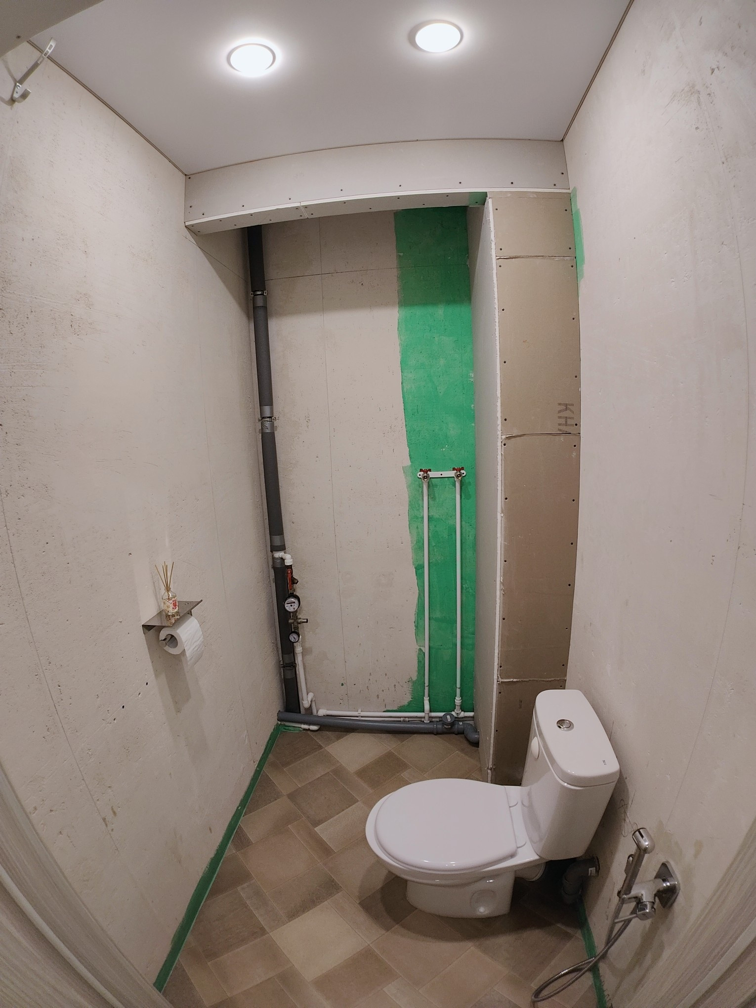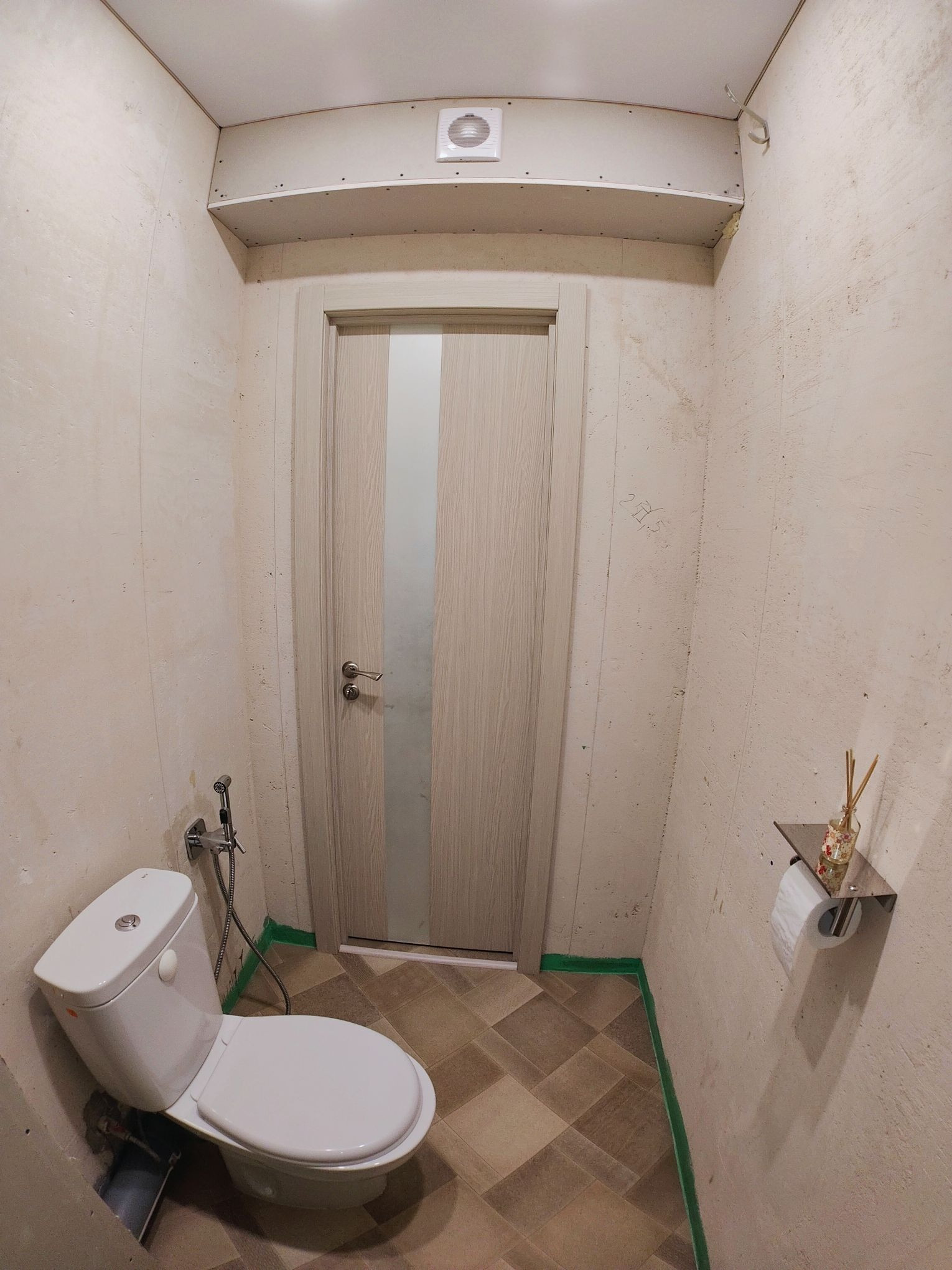 В САН.УЗЛе гиг.душ,ниша, для постройки встроен. шкафа, подготовлены коммуникации для водонагревателя