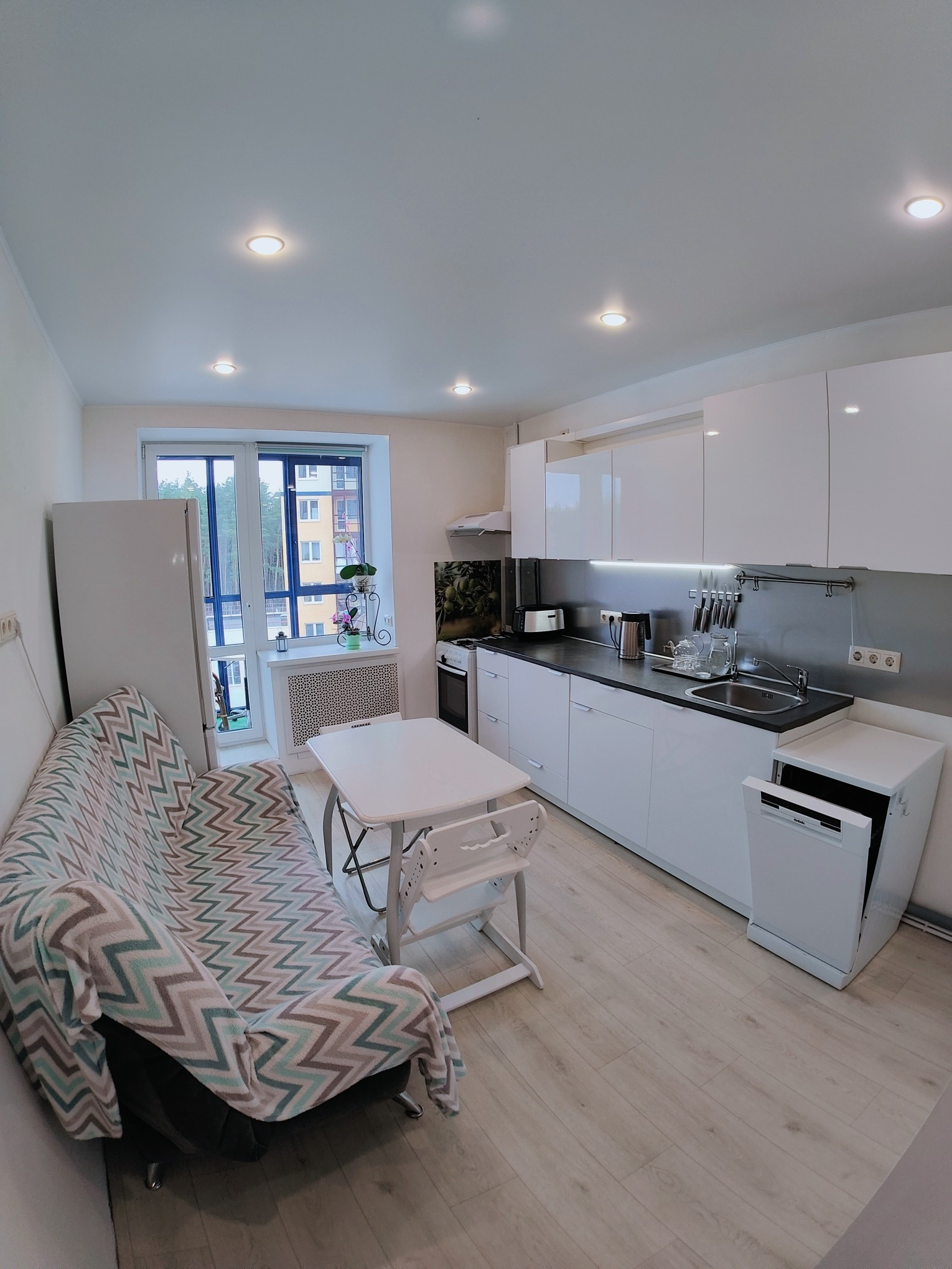 КУХНЯ-ГОСТИННАЯ с просторным БАЛКОНОМ (кух.гарнитур со всей техникой-Вам).