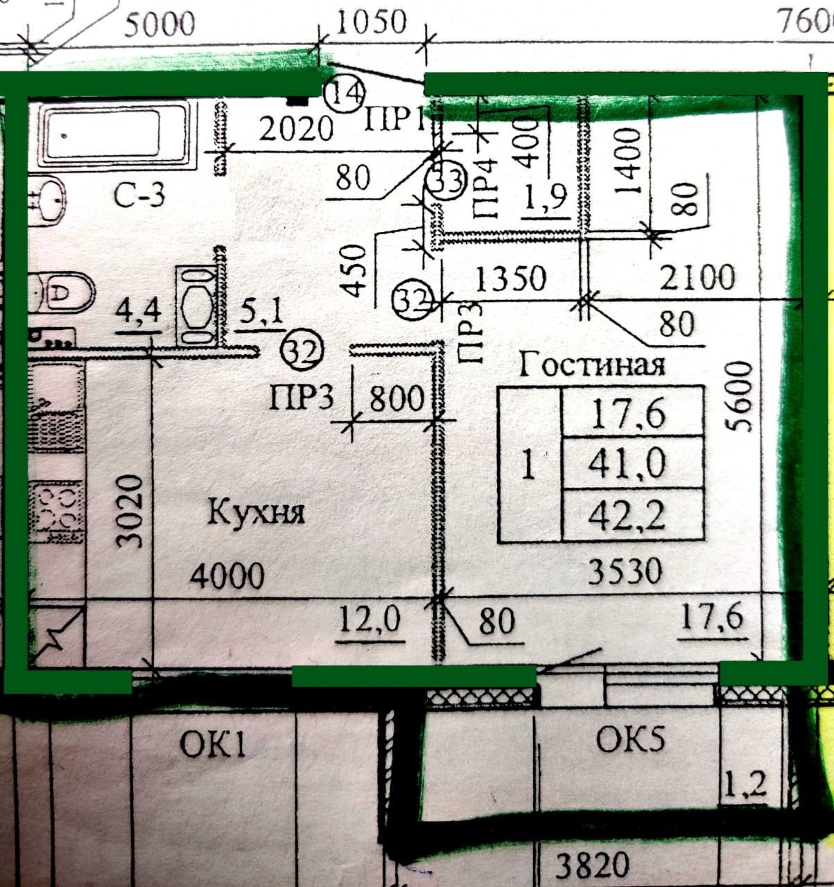 Жилая площадь 17.6 м2