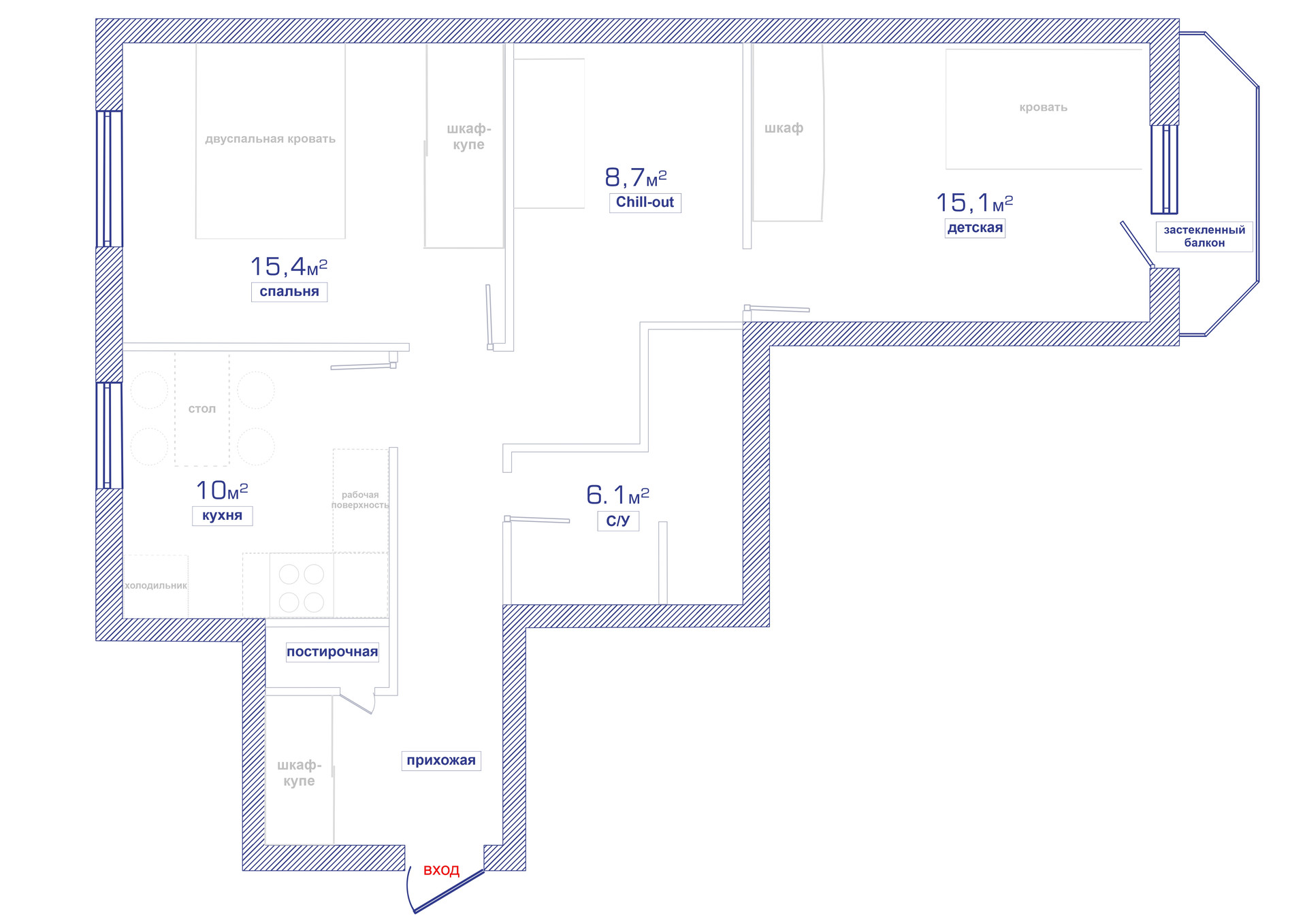 + просторная спальня