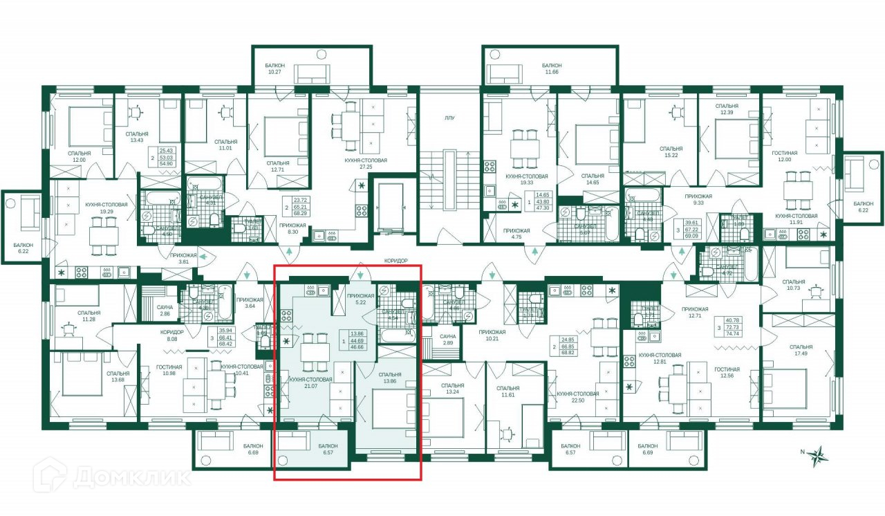 Общая площадь 46.7 м2