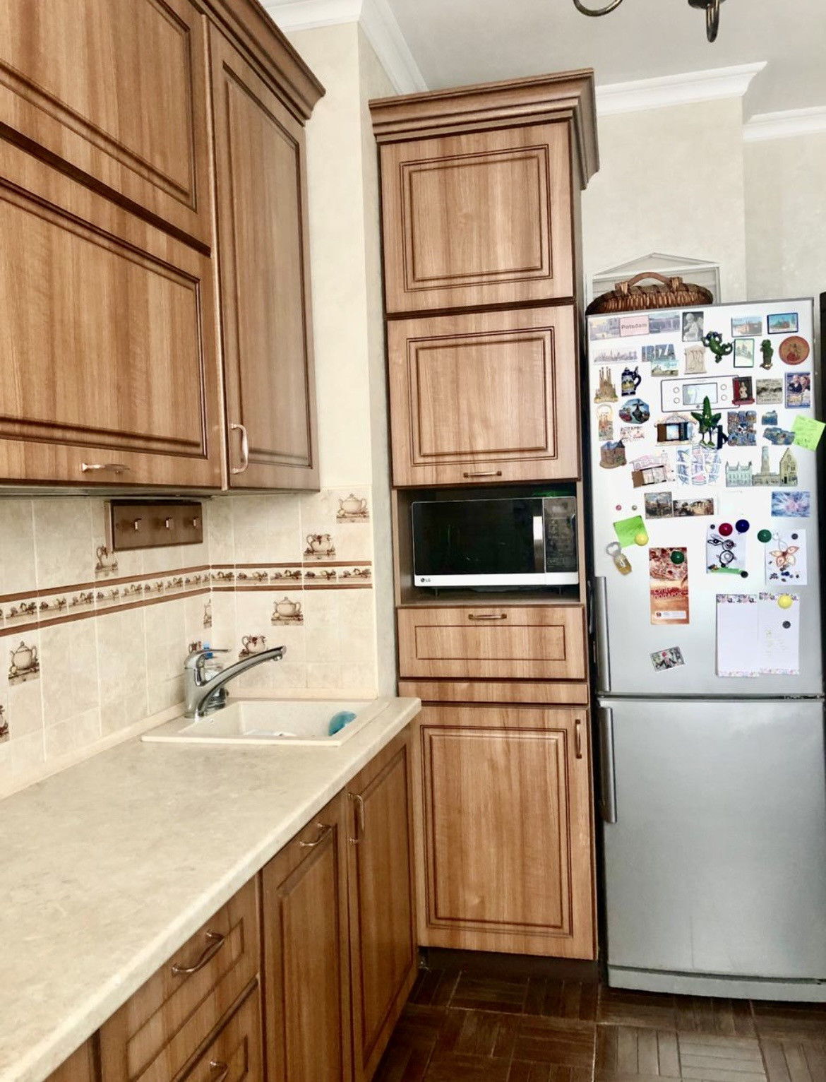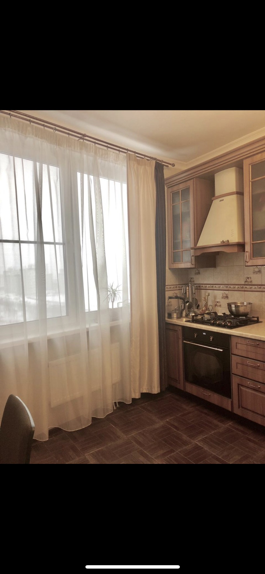 Кухня с шикарными фасадами, вытяжкой .