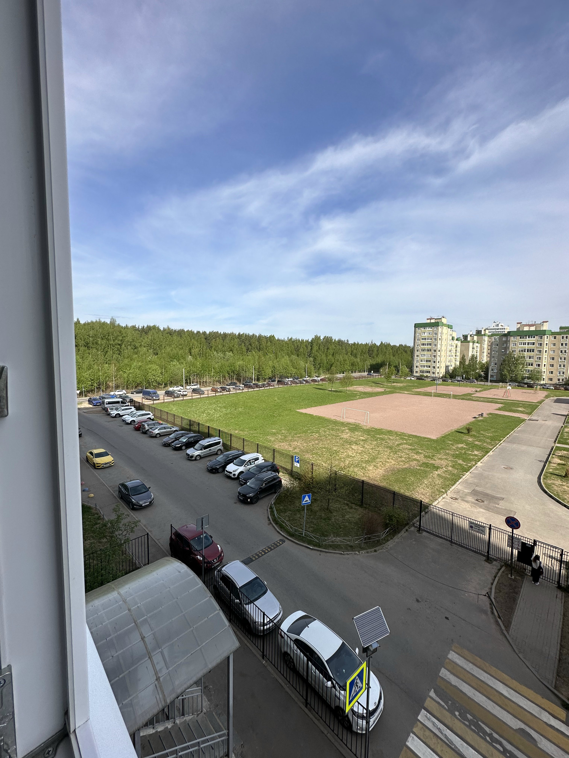 Садик в 5 минутах, школа напротив. Через дорогу шикарный лес.