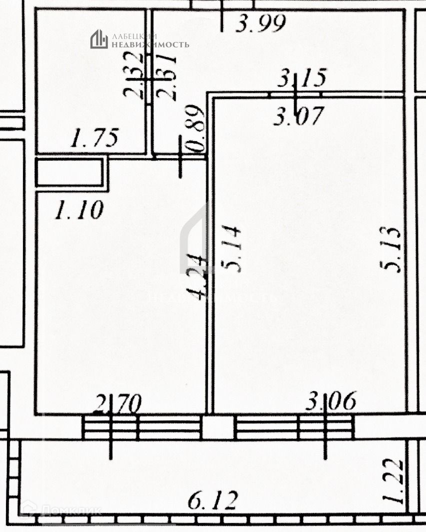 Площадь квартиры с лоджией 44кв.м.: