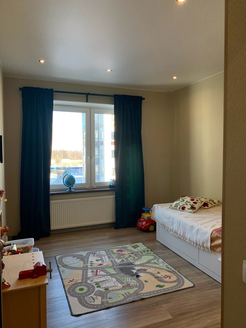 Большая кухня-гостиная 19м и две раздельные комнаты 11м и 13м. В квартире 4 окна. Блокировка от детей на окнах. Квартира угловая-двухстороняя. В квартире всегда тепло. Хорошая управляющая компания. Квартира 5 лет в собственности,приобреталась по  ДДУ в 2018г. Частично уже освобождена от вещей. Переехать и освободить сможем быстро.