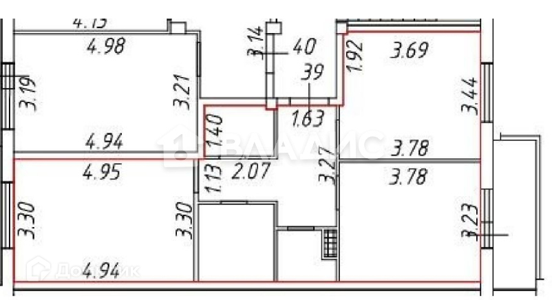 S- 57,5+5 заcтеклeнная лоджия.