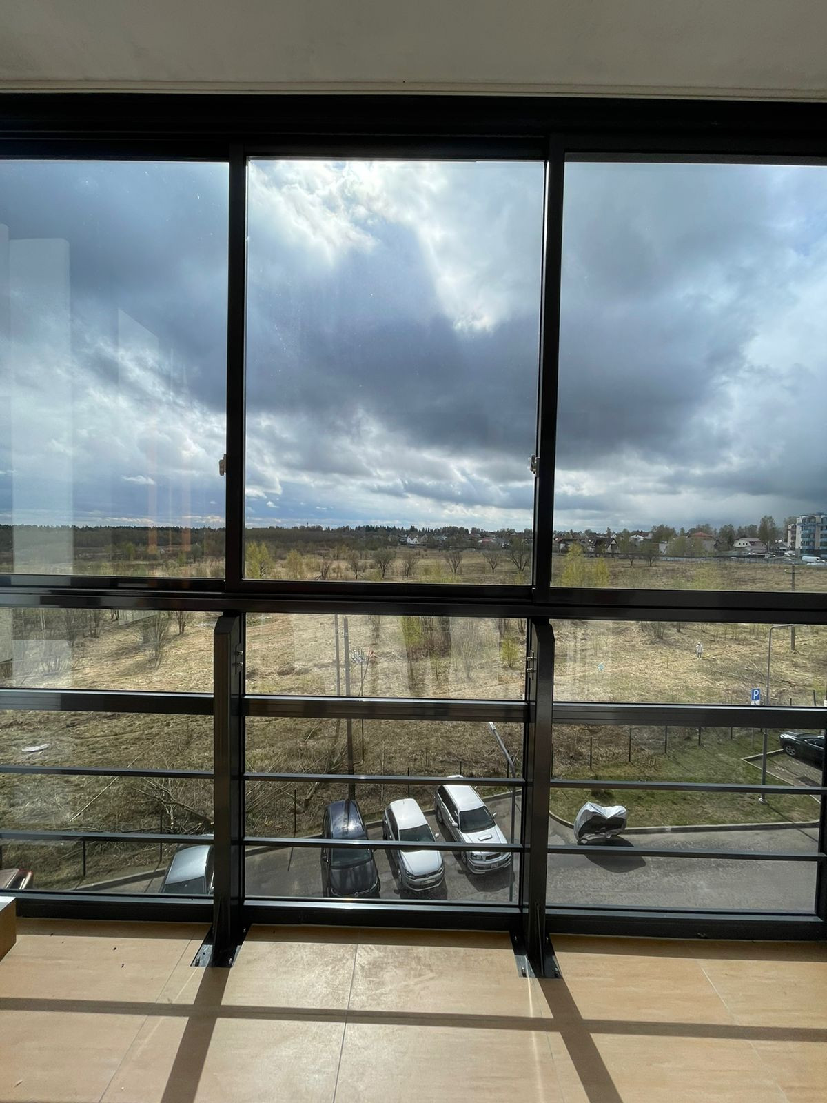 Панорамные окна на лоджии с видом в который можно влюбиться на бескрайнее поле, солнечная сторона