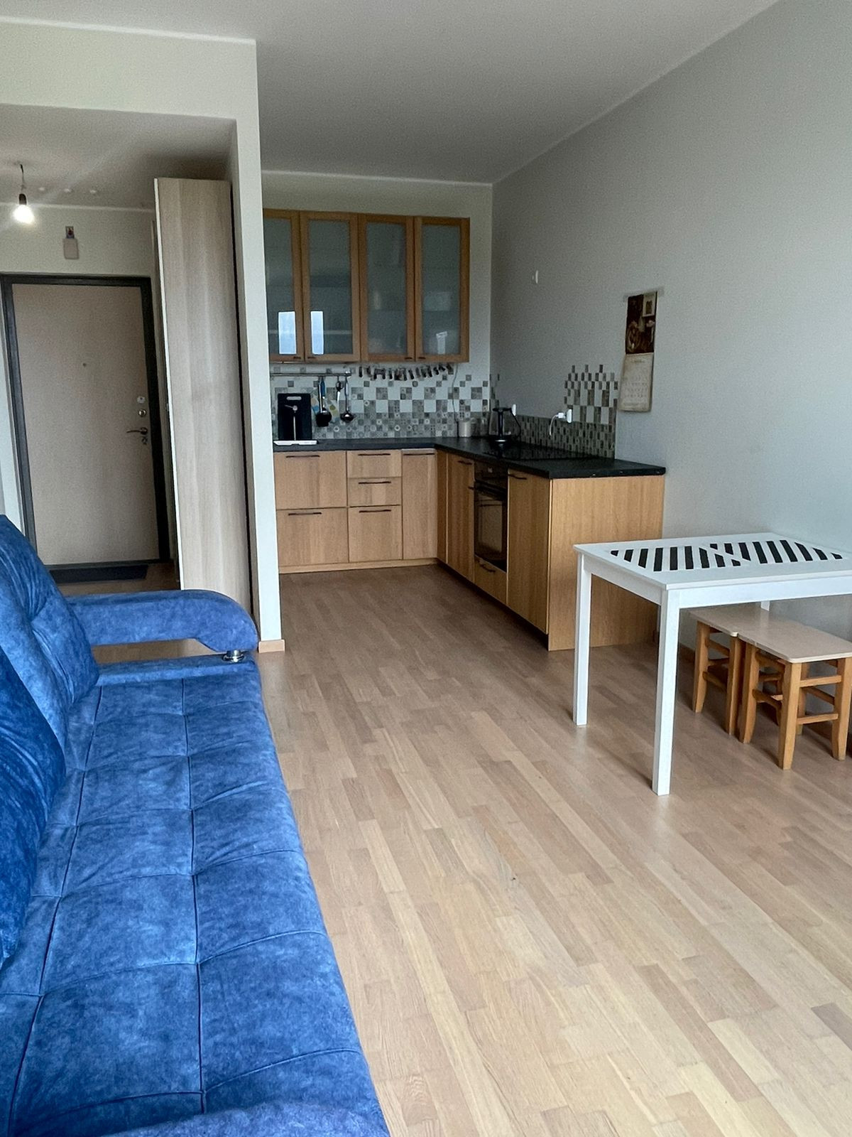 В квартире остаётся вся мебель, кухонный гарнитур со встроенной индукционной плитой, холодильником, стол, стиральная машина LG с функцией сушки, диван, 2 больших шкафа - можно заезжать и жить в своё удовольствие без лишних вложений