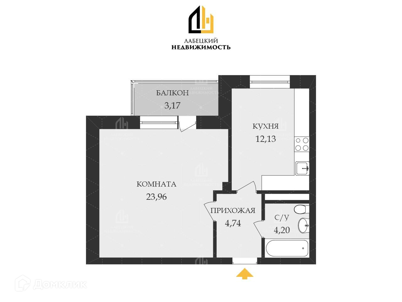Площадь квартиры указана БЕЗ УЧЕТА БАЛКОНА (3.12 м)