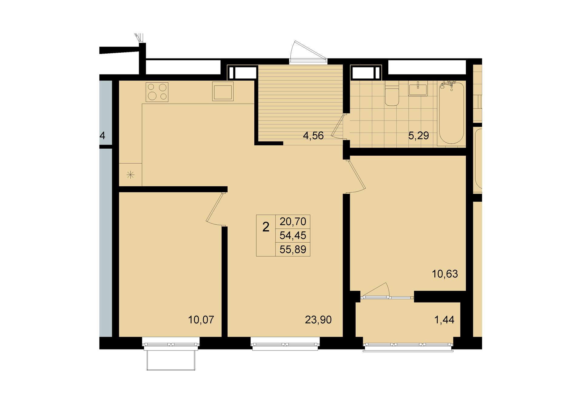 Общая площадь 54.3 м2