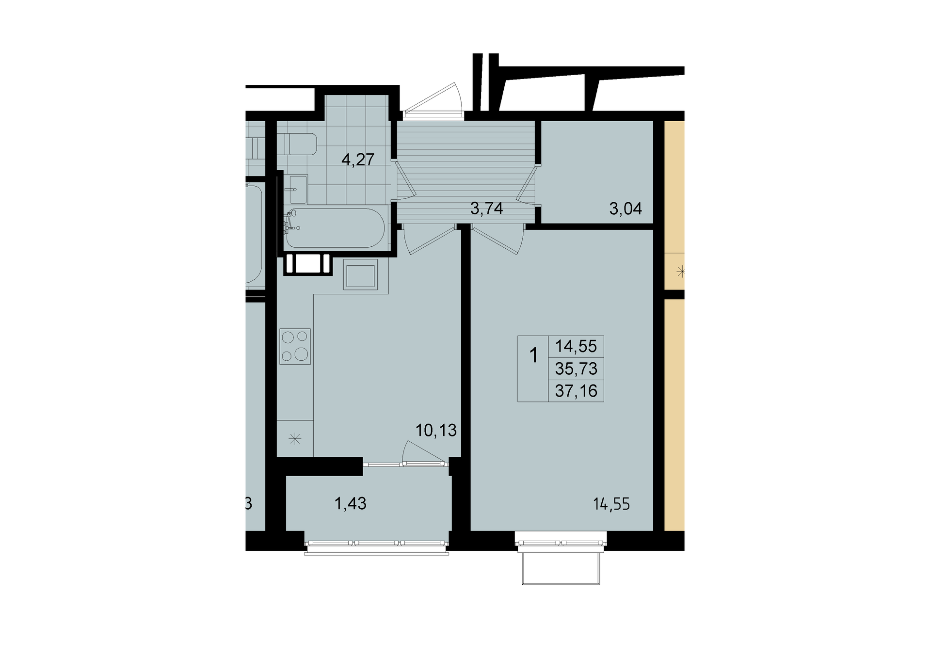 Общая площадь 35.6 м2