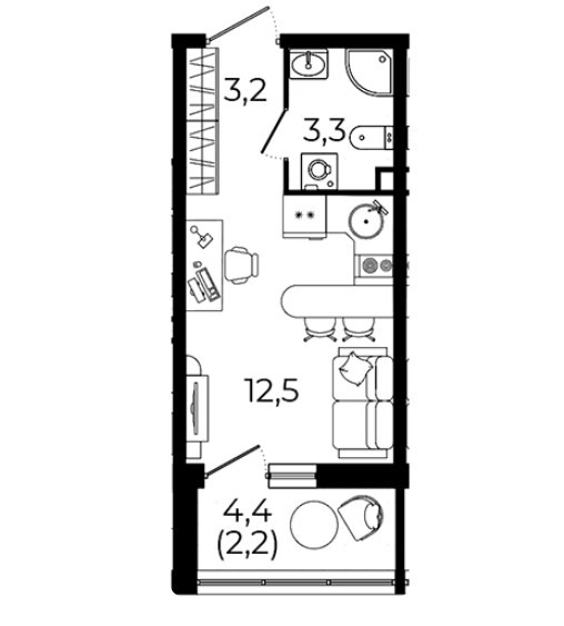 Общая площадь 21 м2