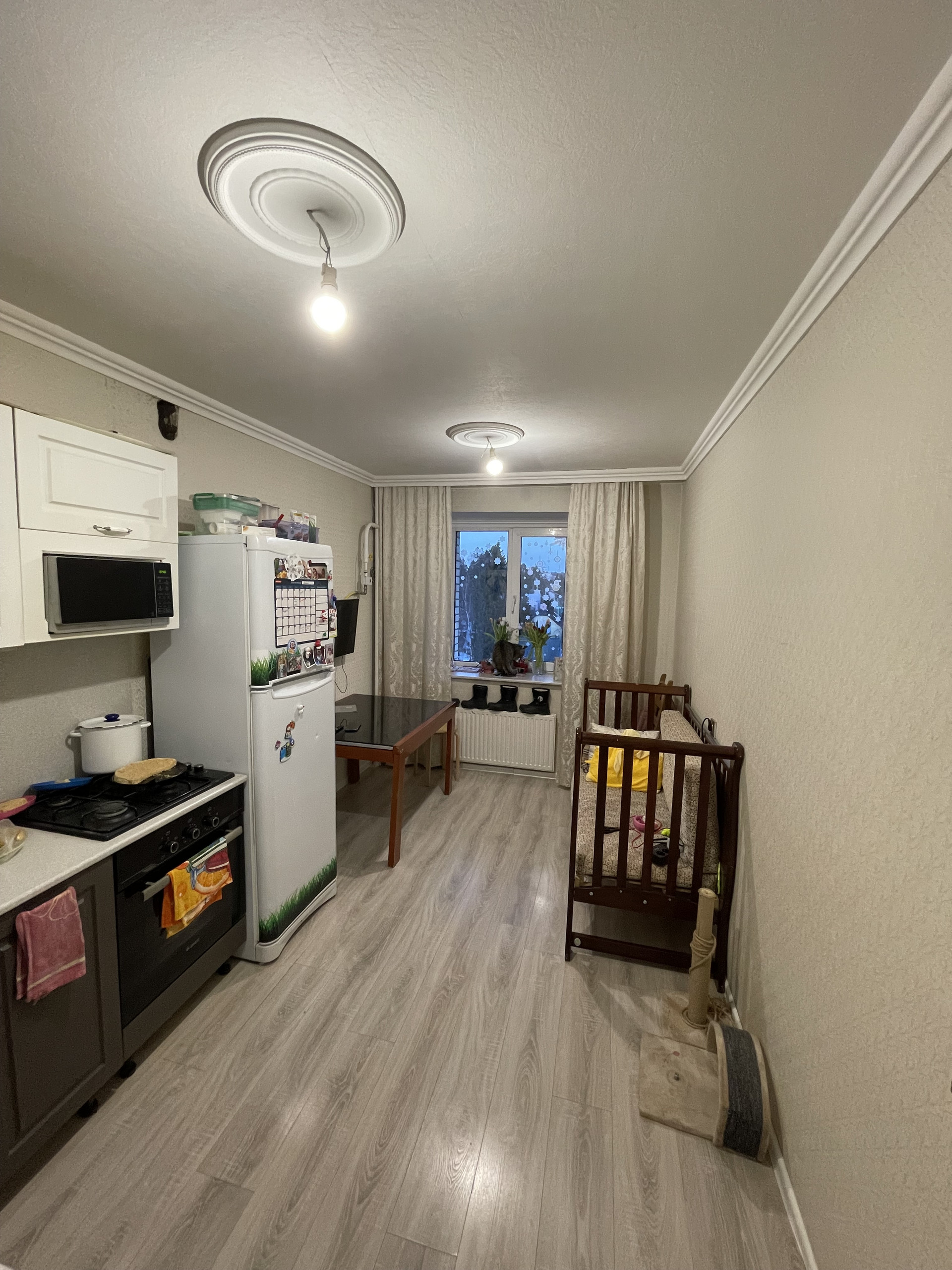 Так бы я охарактеризовал покупку этой квартиры, кирпичный дом, просторная большая двухкомнатная квартира, шикарное место для тех кто любит тишину и спокойствие, нет пыли на окнах от машин, а дышать свежим воздухом можно каждый день.