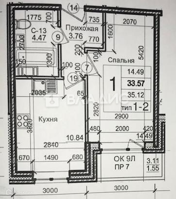 - Балкон (3.1 м²);